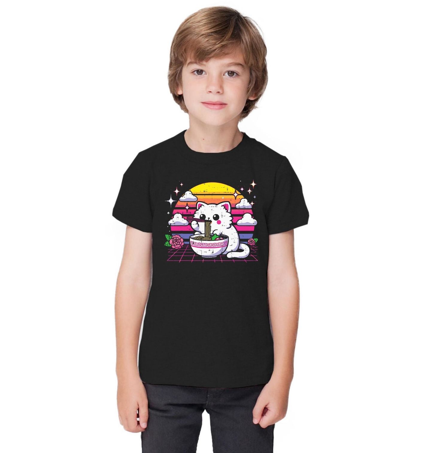 Dětské tričko Kawaii Kočka a Miska Ramenu Vaporwave