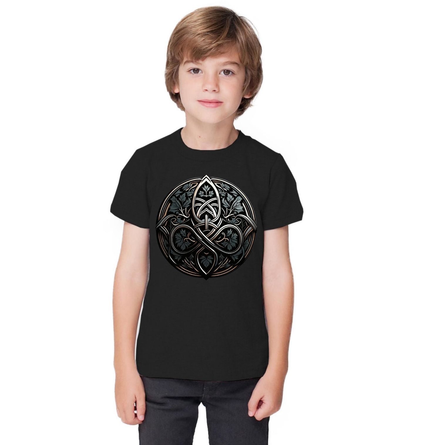 Dětské tričko Keltský Uzel Života. Motiv zobrazuje keltský uzel, tradiční symbol staré keltské kultury. Tento typ ornamentu představuje nekonečno, propojení a rovnováhu mezi přírodou, člověkem a duchovním světem. Propletené linie bez začátku a konce symbolizují věčnost a nepřerušený koloběh života.