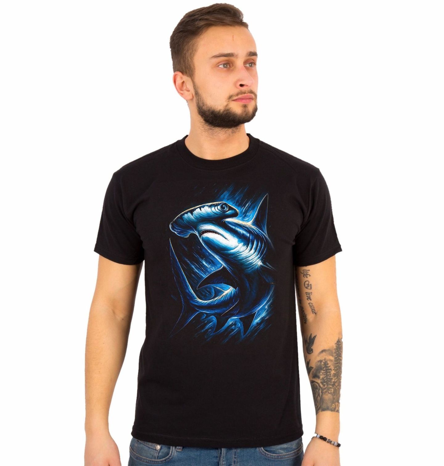 Pánské tričko Kladivoun velký. Tento výrazný motiv zachycuje ikonického mořského predátora – žraloka kladivouna, jednoho z nejpozoruhodnějších druhů oceánu. Právě proto je motiv blízký nejen milovníkům oceánu, ale i těm, pro které je rybaření víc než jen úlovek – je to pochopení přírody a jejích pravidel. Každý zkušený rybář ví, že setkání s kladivounem patří k nejsilnějším zážitkům.