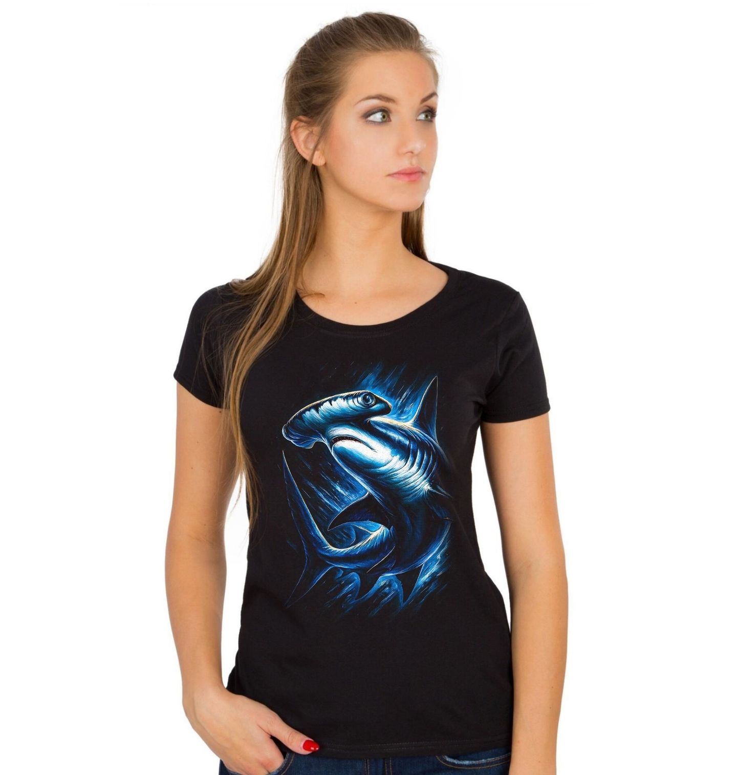 Dámské tričko Kladivoun velký. Tento výrazný motiv zachycuje ikonického mořského predátora – žraloka kladivouna, jednoho z nejpozoruhodnějších druhů oceánu. Právě proto je motiv blízký nejen milovníkům oceánu, ale i těm, pro které je rybaření víc než jen úlovek – je to pochopení přírody a jejích pravidel. Každý zkušený rybář ví, že setkání s kladivounem patří k nejsilnějším zážitkům.