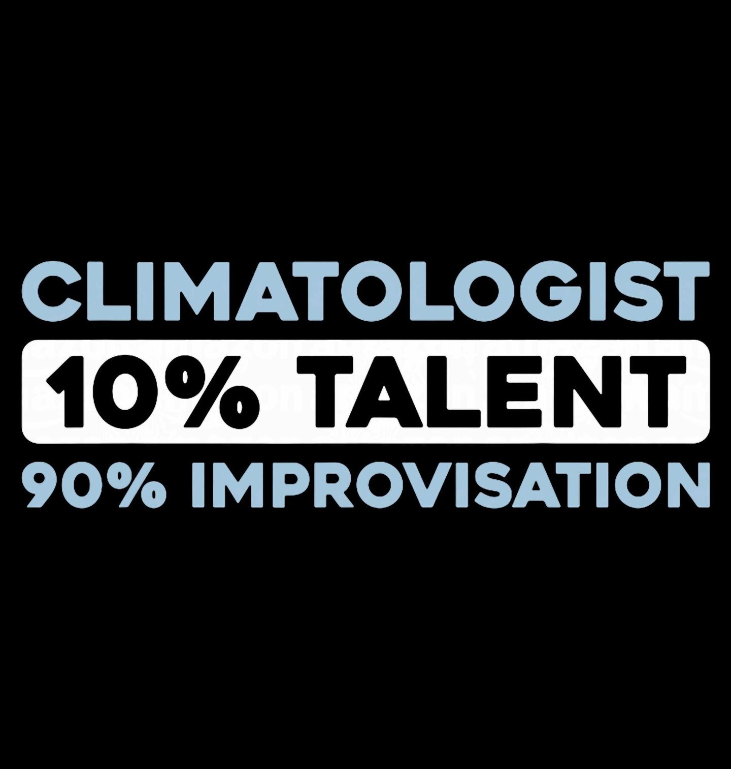 Pánské tričko Klimatolog s Nadhledem. Vtipný design s textem „Climatologist – 10% talent, 90% improvisation“ (Klimatolog – 10 % talent, 90 % improvizace) odlehčeně ukazuje realitu vědecké práce. Ideální pro všechny, kdo mají smysl pro humor i vědu.