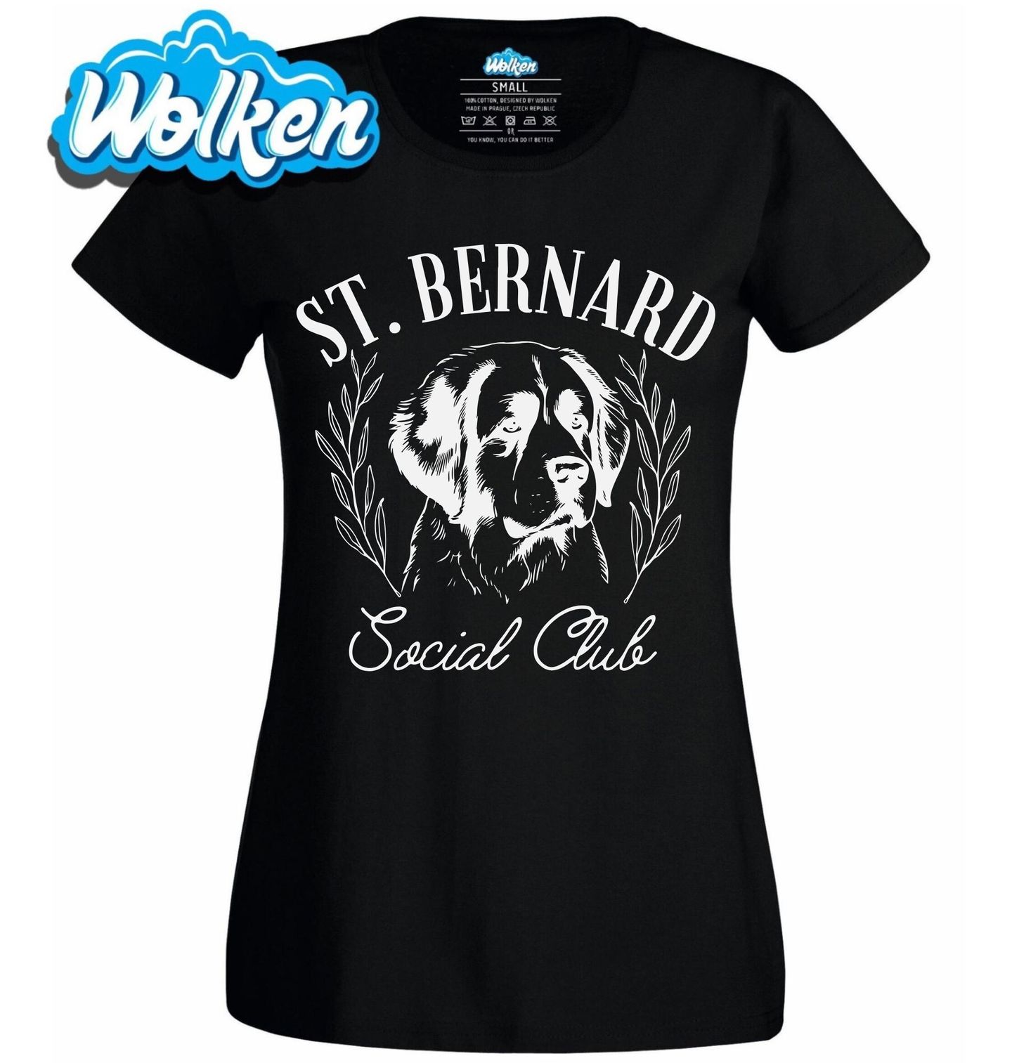 Dámské tričko Klub Milovníků Bernardýnů. St. Bernard Social Club je ideální pro každého pejskaře, který miluje majestátního psa, kterým je bernardýn – ikonický záchranář s velkým srdcem. Pes bernardýn je symbolem věrnosti, síly i přátelského ducha, což tento motiv krásně zachycuje.