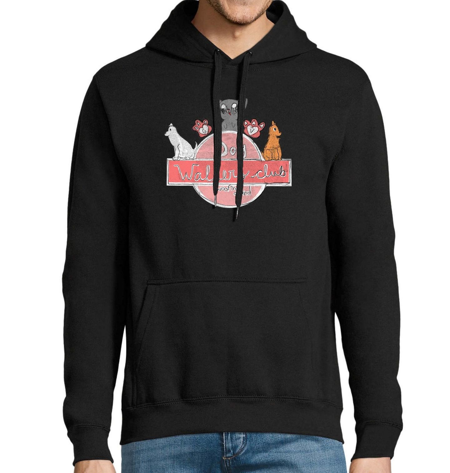 Pánská mikina Klub venčitelů psů. „Dog Walkers Club“ = Klub venčitelů psů, „woofin around“ = štěkající kolem / courající se (volně přeloženo: „touláme se se psy“). Tento motiv spojuje radost z pohybu, přátelství a lásku ke psům, ať už jde o každodenní venčení nebo víkendové výlety do přírody. Tričko je perfektní pro každého pejskaře.