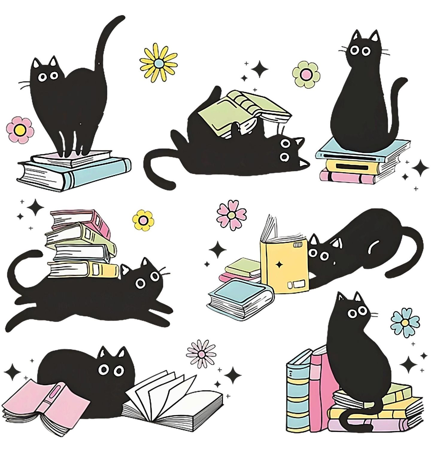 Dámské tričko Knižní Klub Koček. Kočky mezi knihami je ideální pro všechny milovníky koček, knih a čtení. Černé kočky se tu válí na hromadách knih, listují stránkami a dělají vám společnost při čtecím maratonu. Tento hravý a originální design potěší každého, pro koho jsou knihy a kočka tou nejlepší kombinací na světě.