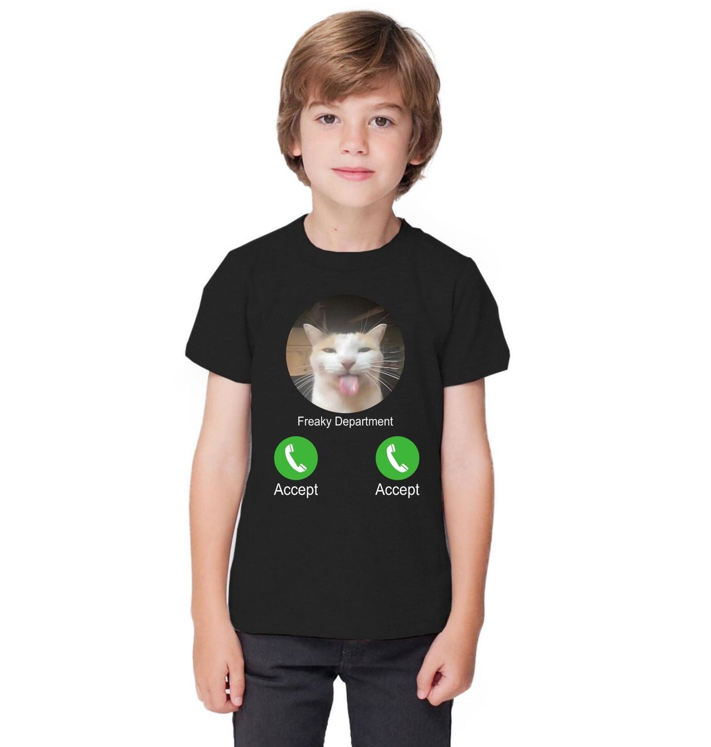 Dětské tričko Kočičí Oddělení volá Phone Call. Freaky Department Accept. Zvedneš to? Tahle roztomilá kočka ti volá přímo z „freaky oddělení“! Vtipný a originální motiv pro všechny milovníky kočkařin a šílených nápadů. Kočka v hlavní roli tě rozesměje pokaždé, když se podíváš.