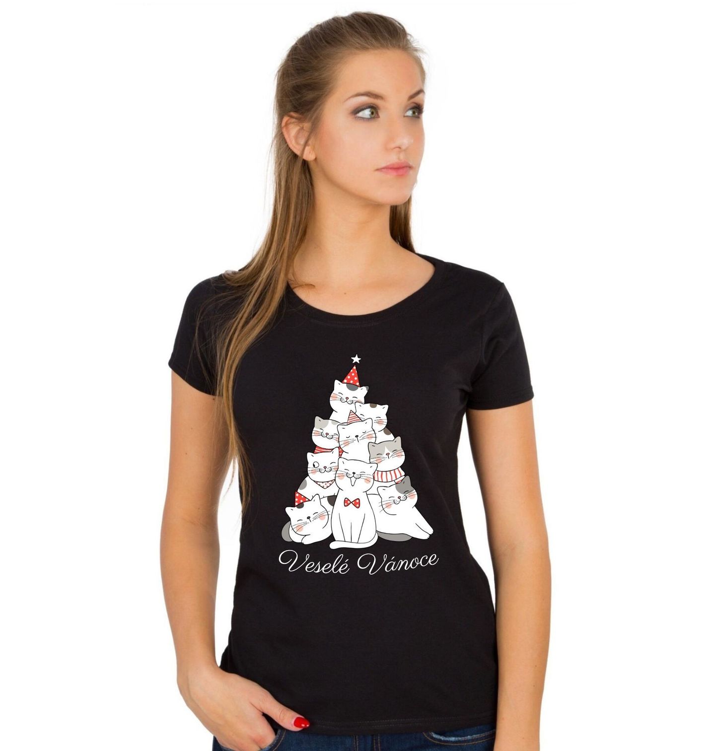 Dámské tričko Kočičí Stromek Veselé Vánoce