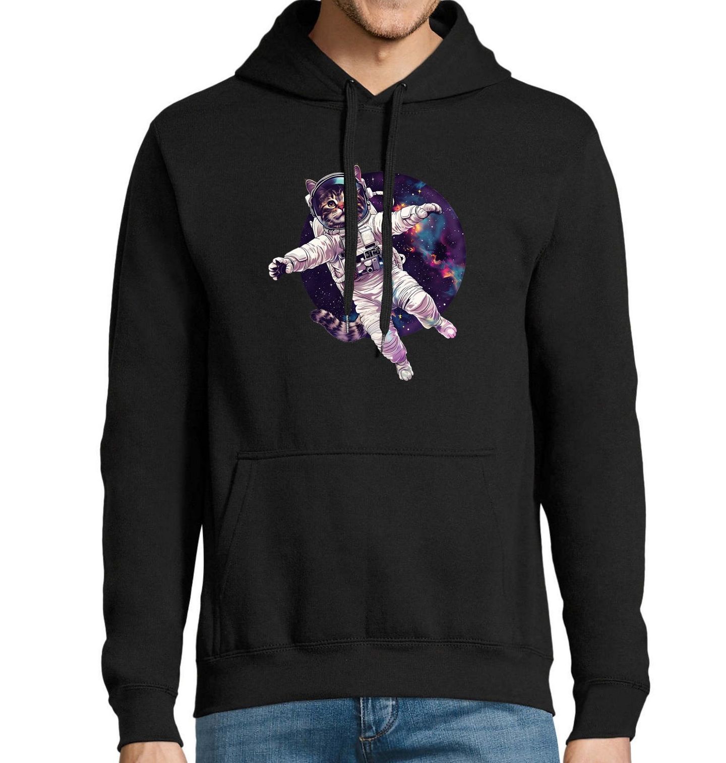 Pánská mikina Kočičí Výprava na Měsíc. Kočka astronaut je perfektní pro všechny milovníky koček a vesmíru. Stylová ilustrace roztomilé kočky ve skafandru, která se vznáší mezi hvězdami, dodá vašemu outfitu originální a hravý nádech. Tento motiv spojuje dobrodružství kosmonautů a půvab našich chlupatých přátel. Ideální pro ty, kdo sní o hvězdách a mají srdce plné lásky ke kočkám.