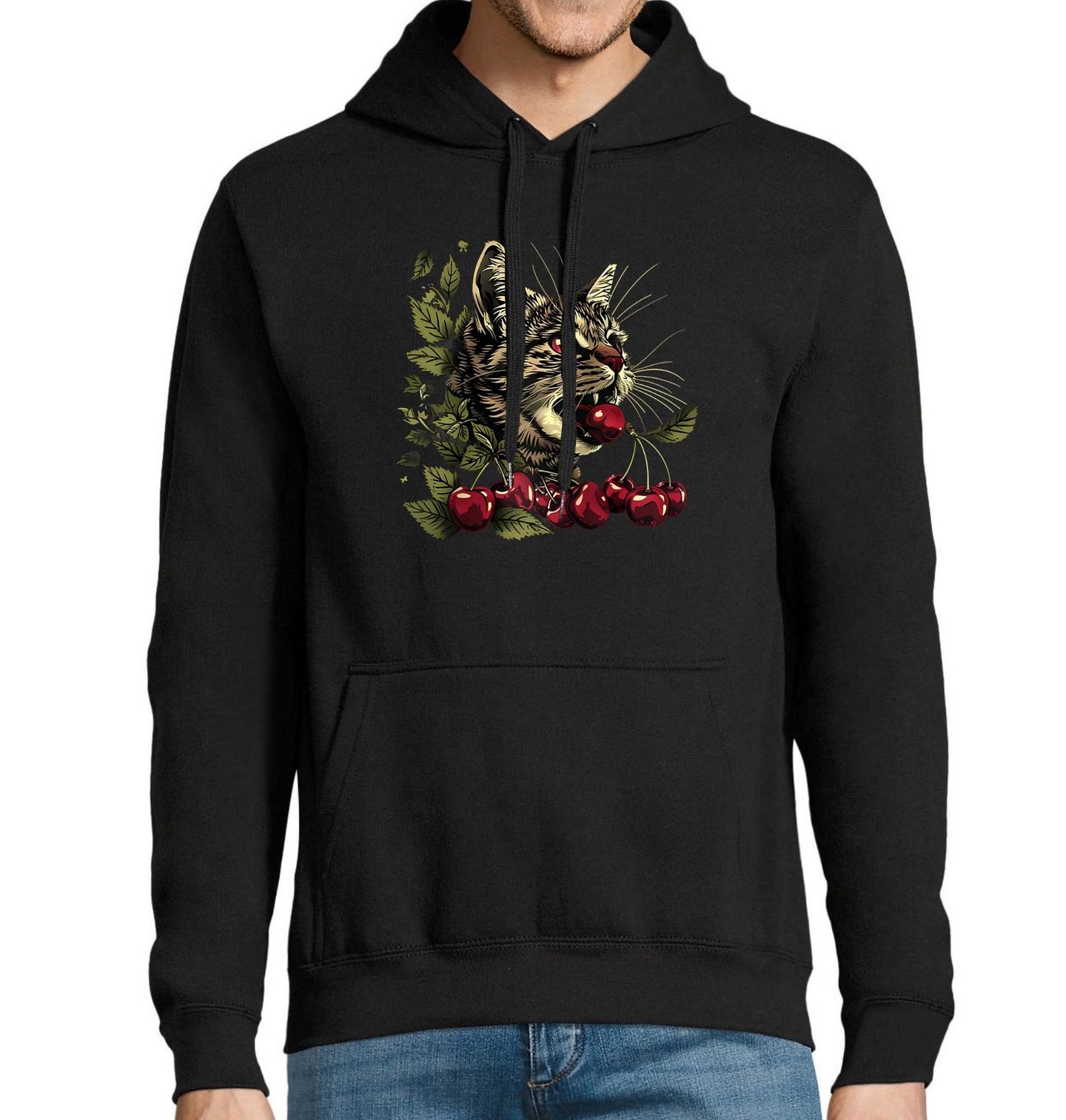 Pánská mikina Kočka a Sklizeň Třešní. Stylové tričko s originálním motivem, na kterém kočka objevuje svou chuť na sladké třešně. Tento detailně zpracovaný design spojuje krásu kočky s čerstvou energií červených třešní, čímž vytváří výrazný a jedinečný look. Ideální pro milovníky koček i ovocných motivů, kteří chtějí ukázat svou lásku k přírodě i zvířatům.