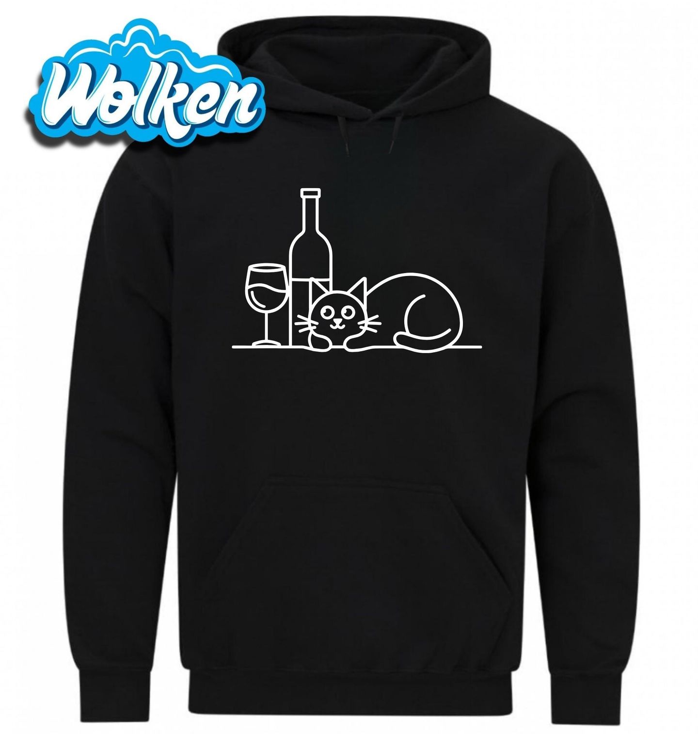 Pánská mikina Kočka a Víno. Stylové tričko s motivem kočky ležící vedle lahve a sklenky vína. Skvělá volba pro všechny, kdo milují své kočky a dobré víno. Ideální na pohodové večery doma, do společnosti, nebo jako vtipný dárek pro každou milovnici koček a vína.