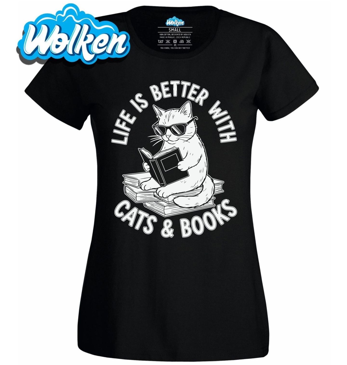 Dámské tričko Kočka s Knihou Life is better with cats & books