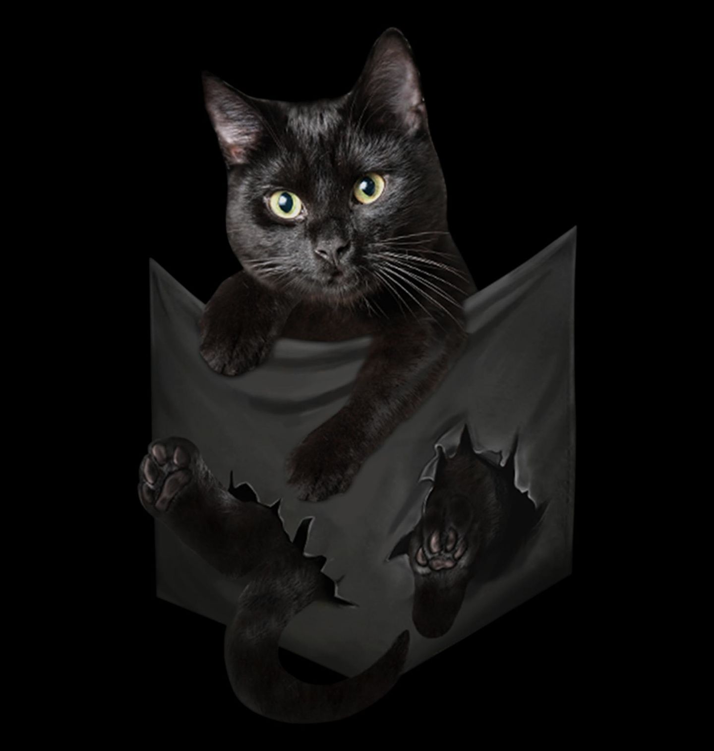 Dámské tričko Kočka Trhající Tričko. Realistická ilustrace zachycuje kočku, která proráží povrch a vystupuje směrem k divákovi. Efekt roztrženého prostoru vytváří dynamiku a pocit pohybu. Ideální design pro milovníky výrazných a originálních motivů s kočkami.