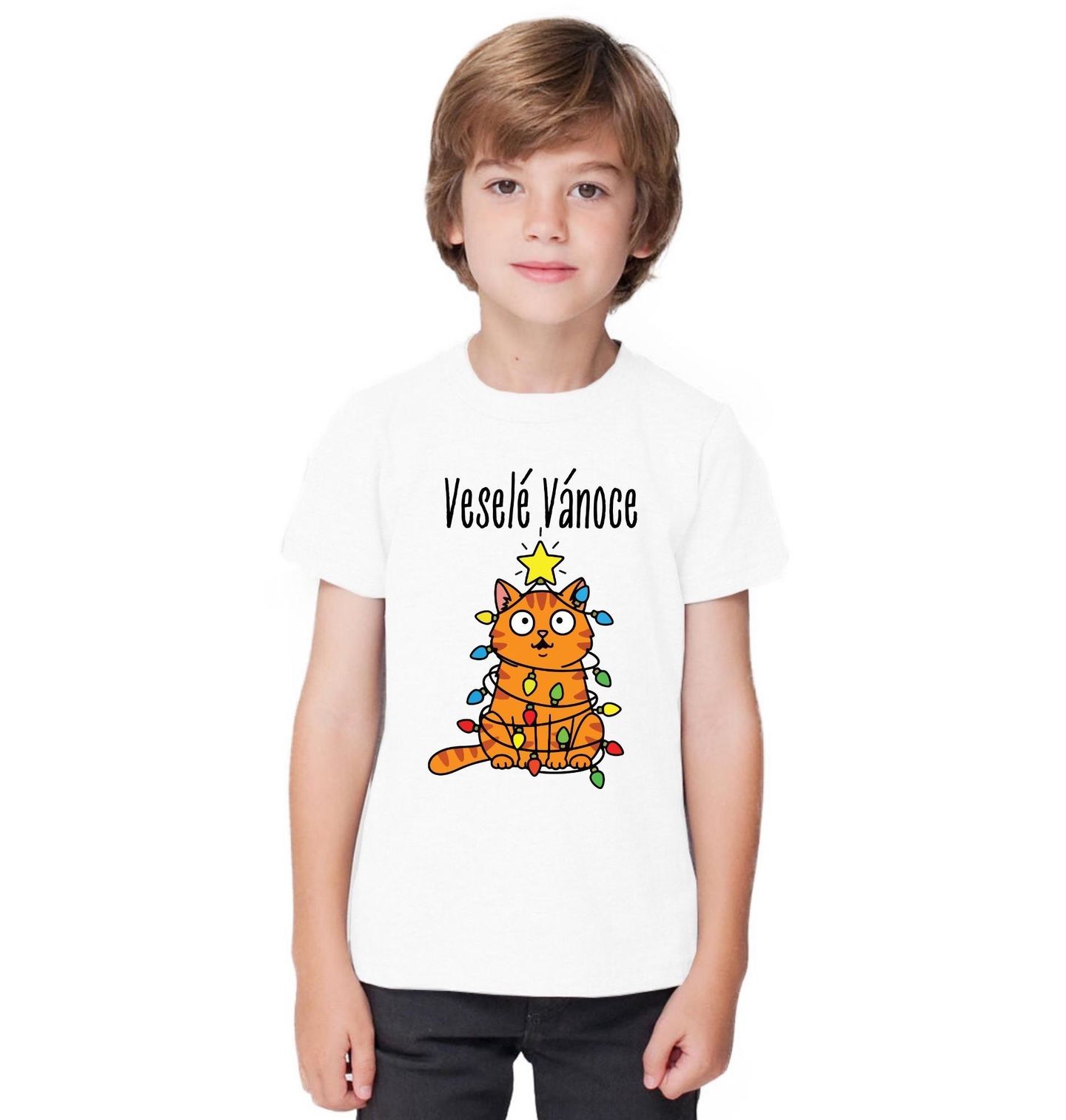 Dětské tričko Kočka ve Světýlkách Veselé Vánoce