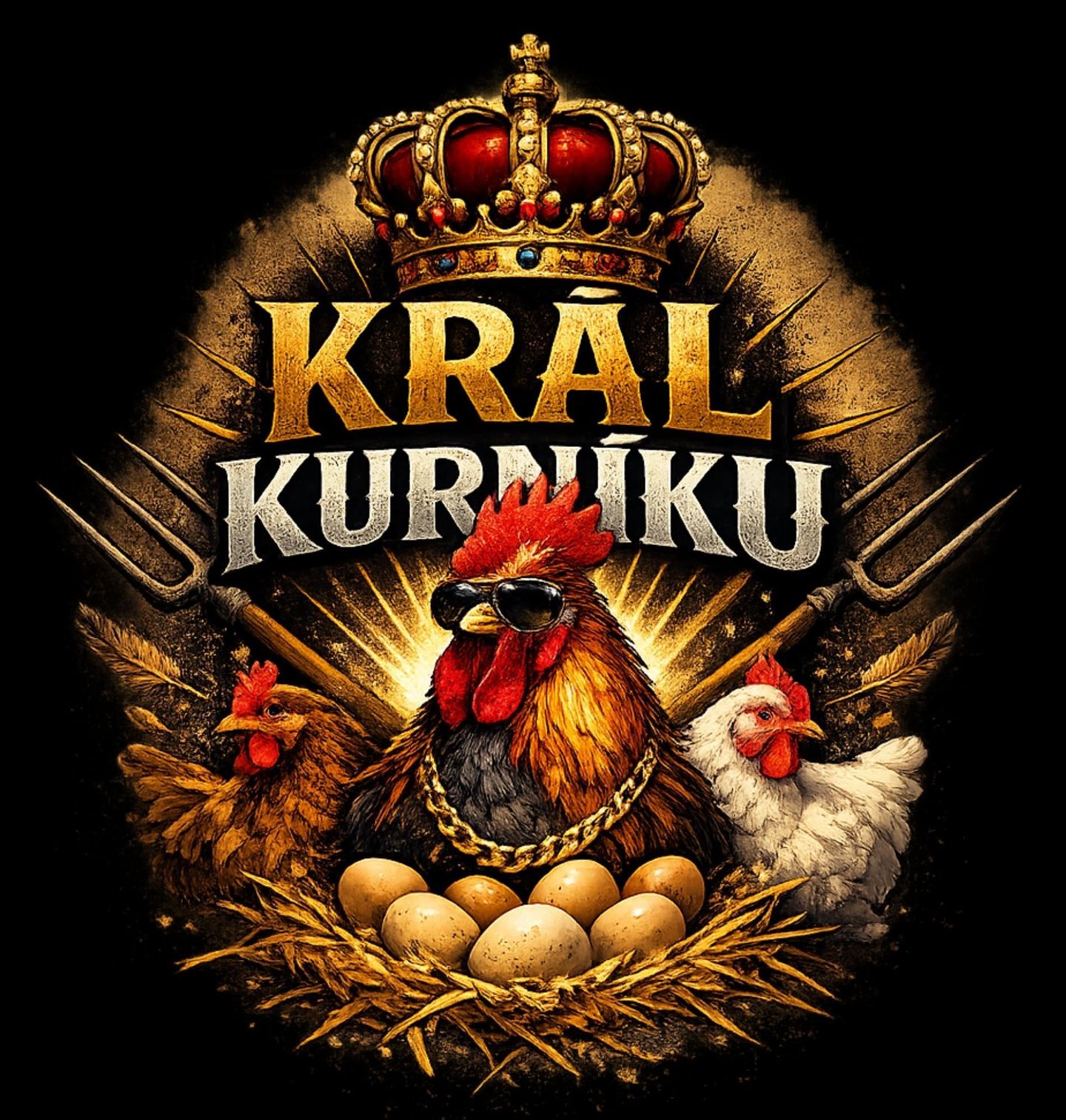 Pánské tričko Kohout Král kurníku. Dominantní kohout jako král celého dvora skvěle vystihuje atmosféru, kterou zná každá farma. Tento design potěší všechny, kdo mají vztah ke zvířatům, chovu drůbeže nebo jednoduše milují venkovský styl. Slepice, kohout i farma tvoří dokonalou kombinaci pro jedinečný a vtipný vzhled, který se hodí na každodenní nošení i jako originální dárek.
