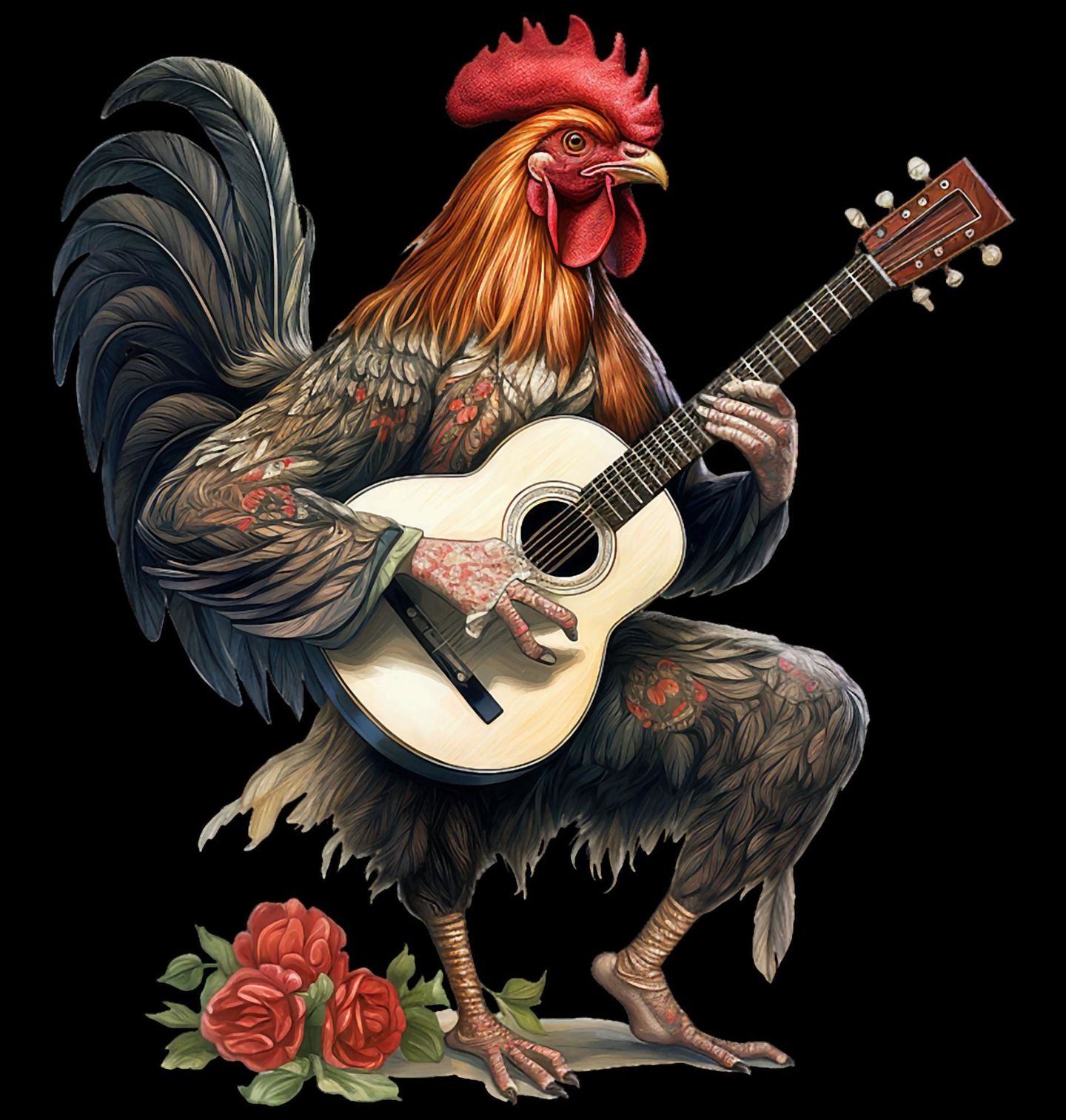 Dětské tričko Kohout s Akustickou Kytarou. Originální motiv, kde hlavní roli hraje výrazný kohout držící akustickou kytara, přináší spojení hudby a venkovského stylu v jedinečném provedení. Detailní ilustrace zachycuje sebevědomý postoj a energii, kterou by mu mohla závidět kdejaká slepice z celého dvora. Tento design je ideální pro každého, kdo miluje hudbu, nadsázku a netradiční motivy.