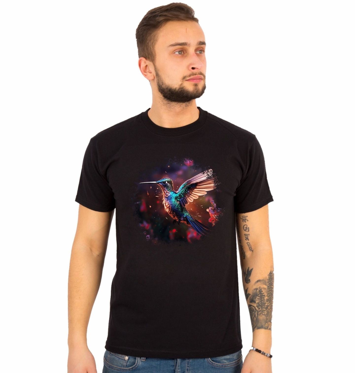 Pánské tričko Kolibřík modrolící v Letu. Tento detailní a dynamický motiv zachycuje ptáka v okamžiku dokonalé lehkosti. Kolibřík s roztaženými křídly působí jako živý drahokam – jeho třpytivé barvy symbolizují energii, radost a svobodu pohybu. Kolibřík žije především v Severní, Střední a Jižní Americe, kde obývá tropické pralesy, horské oblasti i zahrady plné květů.
