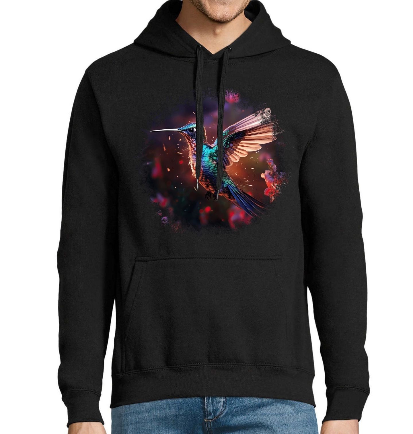Pánská mikina Kolibřík modrolící v Letu. Tento detailní a dynamický motiv zachycuje ptáka v okamžiku dokonalé lehkosti. Kolibřík s roztaženými křídly působí jako živý drahokam – jeho třpytivé barvy symbolizují energii, radost a svobodu pohybu. Kolibřík žije především v Severní, Střední a Jižní Americe, kde obývá tropické pralesy, horské oblasti i zahrady plné květů.