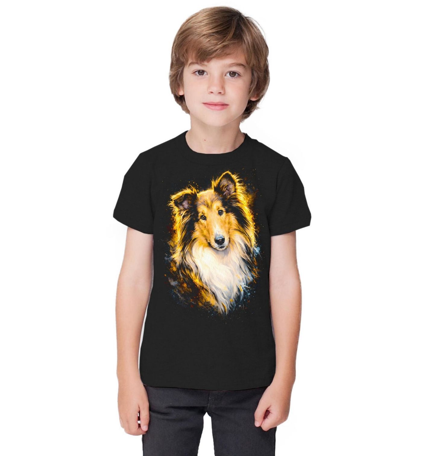 Dětské tričko Kolie dlouhosrstá. Tento krásný pes vyniká svou bohatou srstí, jemným výrazem a typickou klidnou povahou, která si získá každého milovníka psů. Každý pejskař ocení detailní zpracování srsti i něžný pohled, který dokonale vystihuje přátelskou a citlivou povahu tohoto plemene. Kolie dlouhosrstá je známá svou vysokou inteligencí, loajalitou a silným vztahem ke své rodině, což z ní dělá ideálního společníka.