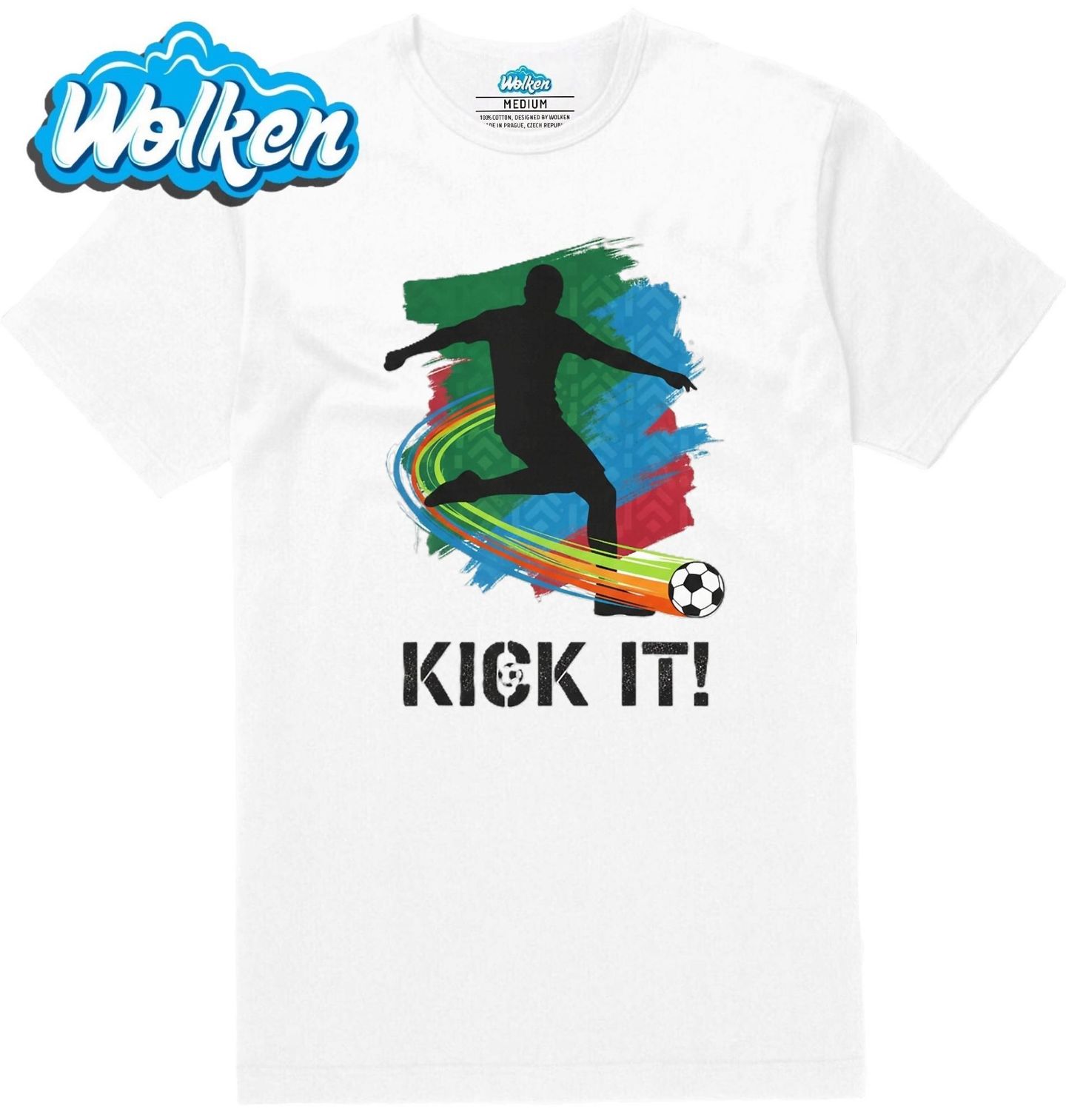 Pánské tričko Kopni do míče KICK IT! Ukaž svou vášeň pro fotbal stylově! Tento dynamický design s nápisem „KICK IT!“ zachycuje sílu, rychlost a energii, které patří ke každému správnému sportovnímu momentu. Barevné stopy za míčem a silueta hráče v akci symbolizují opravdovou lásku k pohybu a soutěživosti.
