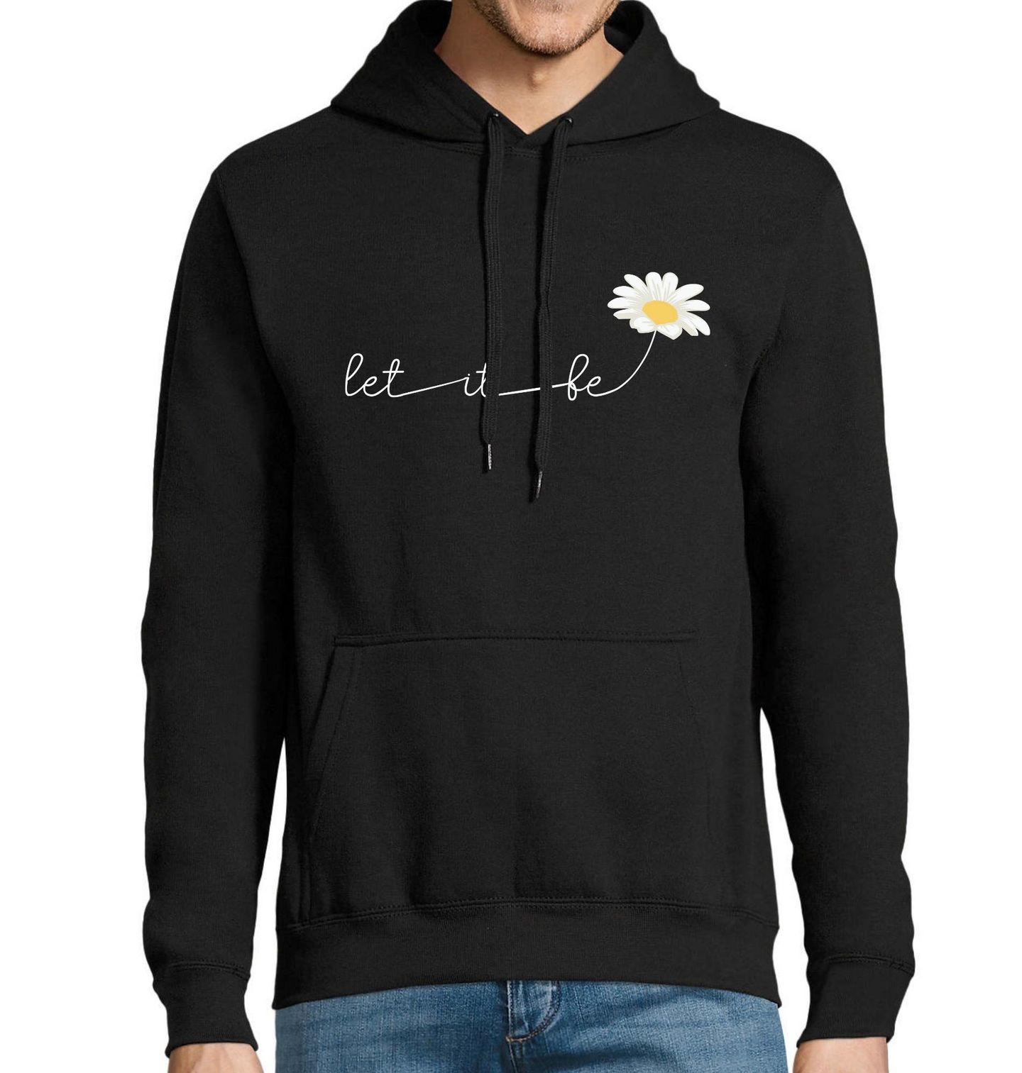 Pánská mikina Kopretina Let It Be. Objevte kouzlo jednoduchosti s tímto tričkem s nápisem „Let it be“ česky ”Nech to být” a jemnou kresbou květiny – kopretiny, která symbolizuje klid, naději a harmonii. Tento motiv je ideální pro všechny, kdo milují květiny, pozitivní energii a hledají v módě i kousek duševního klidu.