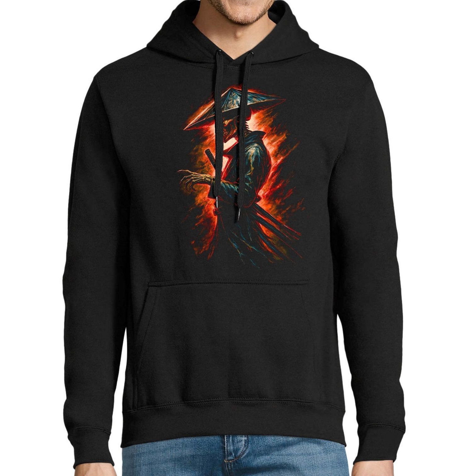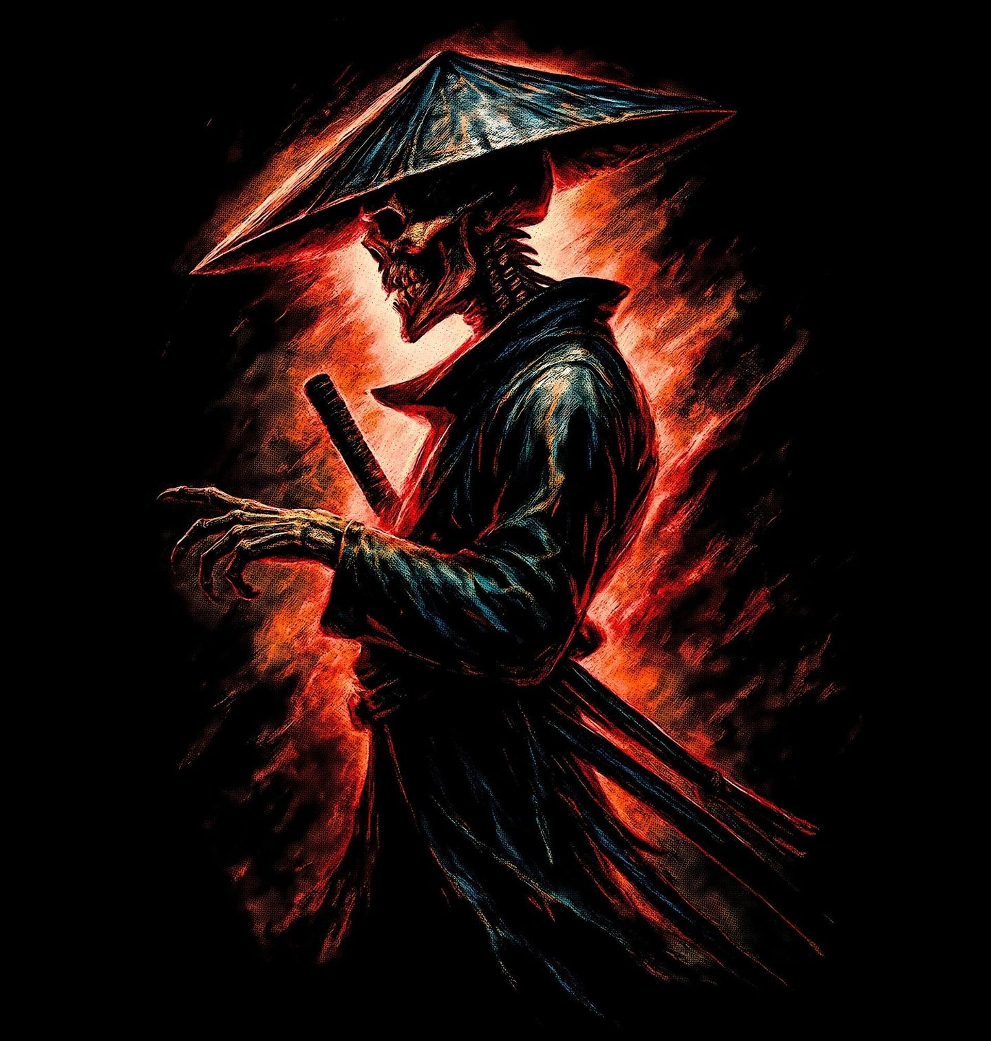 Pánská mikina Kostra Samuraje. Unikátní temný motiv, který propojuje japonskou tradici s mystikou smrti. Dominantní kostlivec v roli neústupného bojovníka vystupuje jako samuraj, jehož identitu podtrhuje ikonický klobouk kasa. Kasa (笠) = obecný název pro široký slaměný klobouk. Nosili ho hlavně rolníci, poutníci nebo samurajové na cestách. Sloužil jako ochrana před sluncem, deštěm i sněhem.