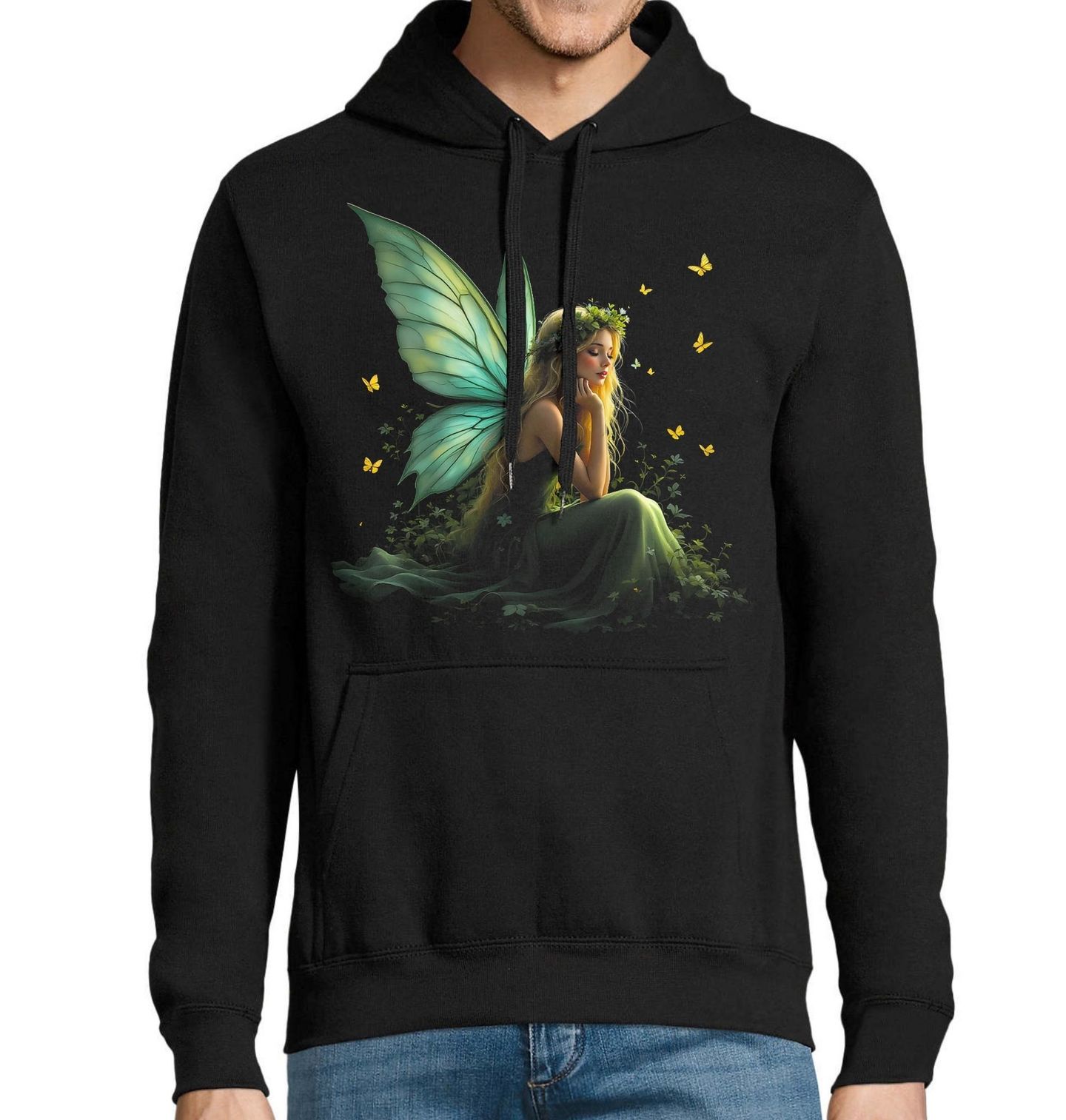 Pánská mikina Kouzelná Lesní Víla. Jemný fantasy design zachycuje krásnou vílu s křídly obklopenou přírodou a světlem. Tento design působí klidně, magicky a přináší pocit harmonie. Ideální pro milovníky fantazie, přírody a snových motivů.