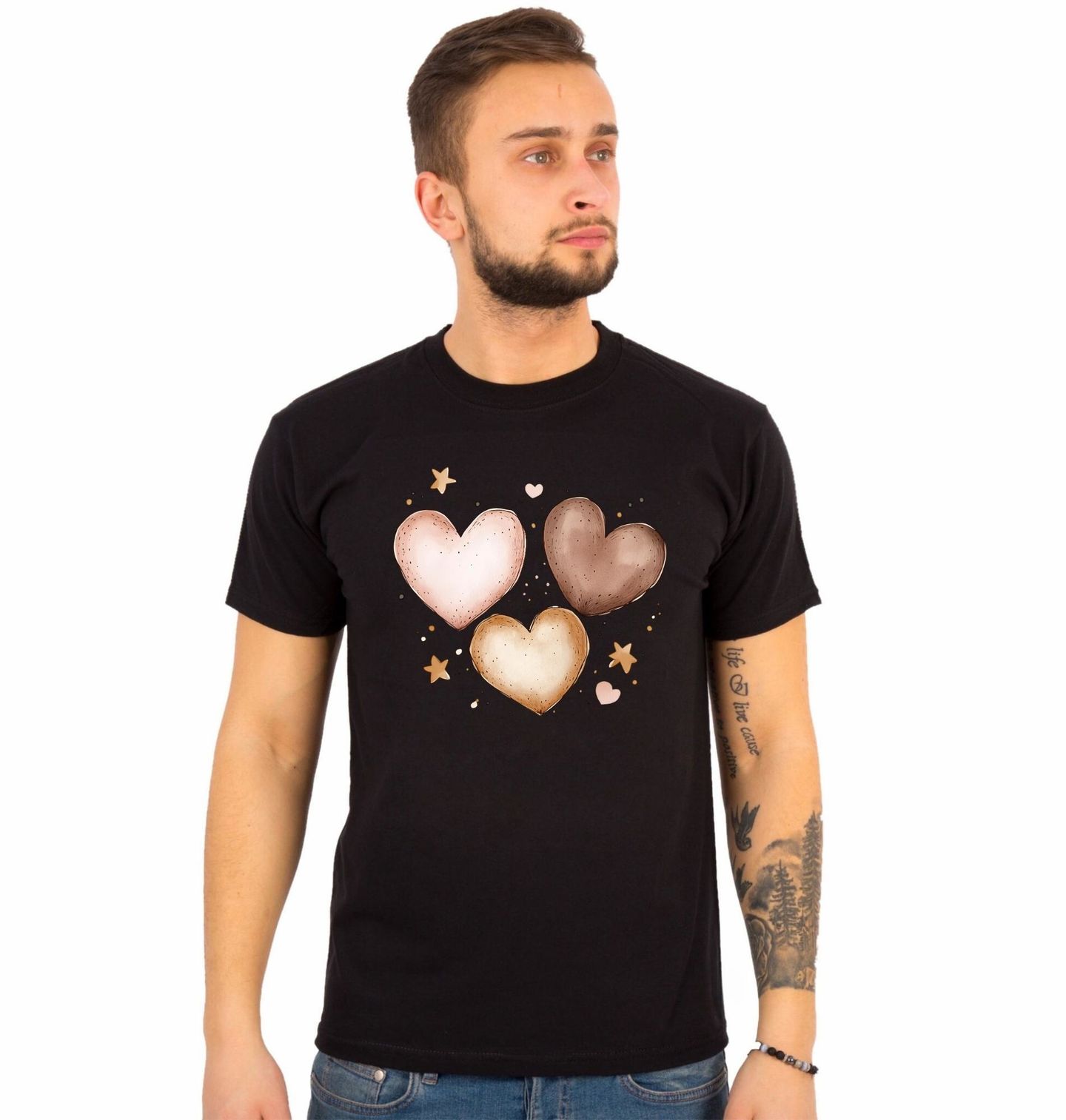 Pánské tričko Kouzelná Srdce Lásky. Roztomilý a jemný motiv tří pastelových srdcí doplněných o drobné hvězdičky je jako stvořený pro všechny romantické duše. Tento design vyjadřuje, co je nejdůležitější – láska. Hlavním prvkem je srdce v měkkých, hřejivých odstínech, díky kterým motiv působí něžně a elegantně. Ideální pro Valentýn i každý den, kdy chceš ukázat, že láska je všude kolem nás.