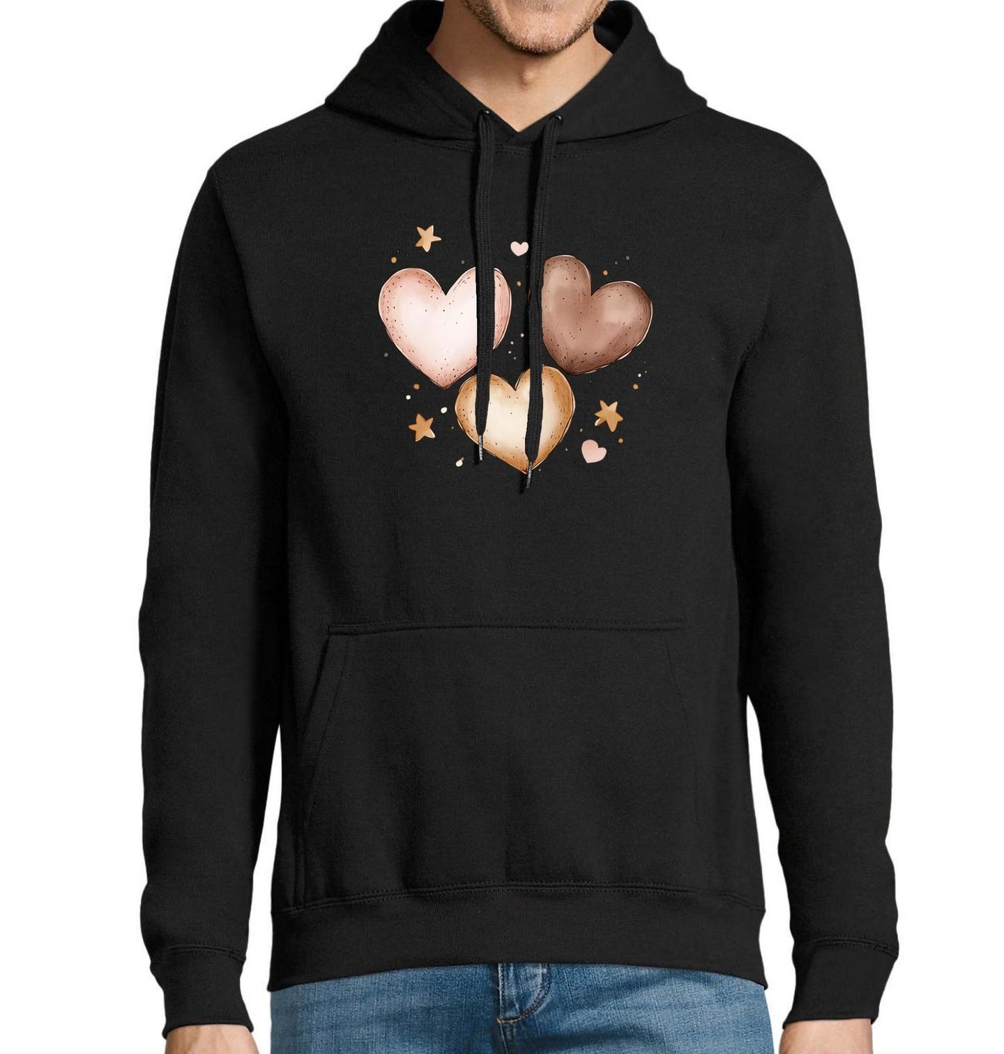 Pánská mikina Kouzelná Srdce Lásky. Roztomilý a jemný motiv tří pastelových srdcí doplněných o drobné hvězdičky je jako stvořený pro všechny romantické duše. Tento design vyjadřuje, co je nejdůležitější – láska. Hlavním prvkem je srdce v měkkých, hřejivých odstínech, díky kterým motiv působí něžně a elegantně. Ideální pro Valentýn i každý den, kdy chceš ukázat, že láska je všude kolem nás.