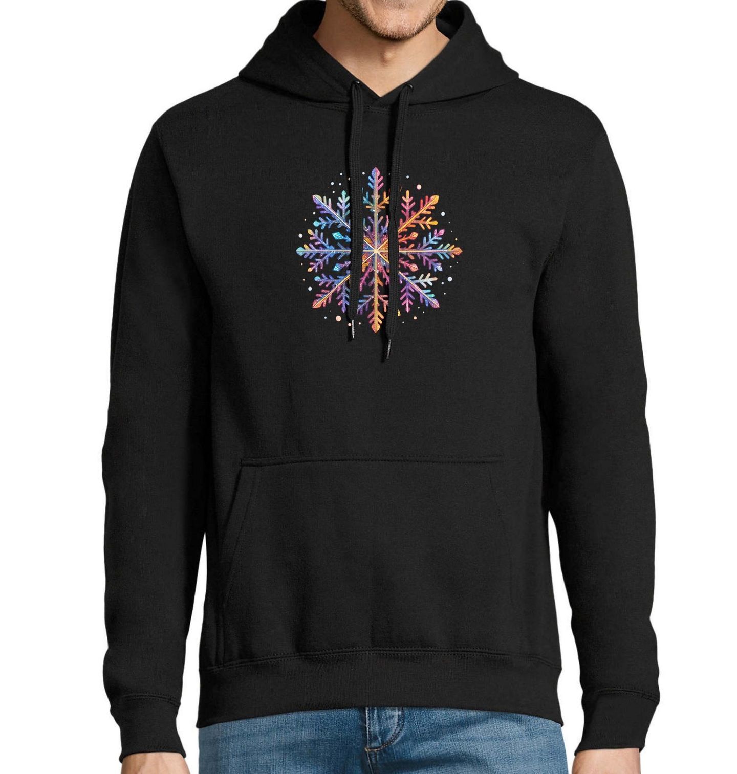 Pánská mikina Kouzelná Zimní Vločka. Zářivá vločka v sobě spojuje kouzlo zimy, třpytivý sníh a slavnostní atmosféru, kterou přinášejí Vánoce. Tento originální motiv v podobě ledové hvězdy rozzáří každý sváteční okamžik. Vhodný pro všechny, kdo milují barvy a radostnou energii vánočních dní plných vloček a zimní pohody.
