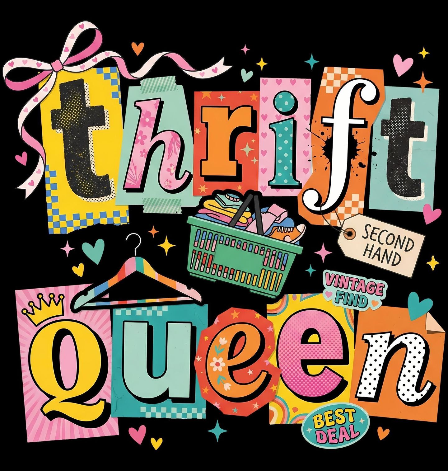 Dámské tričko Královna Second Handů Thrift Queen. Stylový a hravý motiv pro všechny ženy, které milují originální módu a radost z objevování jedinečných kousků. Tahle designová „královna“ ví, že nejlepší poklady se skrývají právě v second hand. Každé nakupování se tak mění v dobrodružství plné stylu, barev a radosti – a navíc za skvělou cenu.