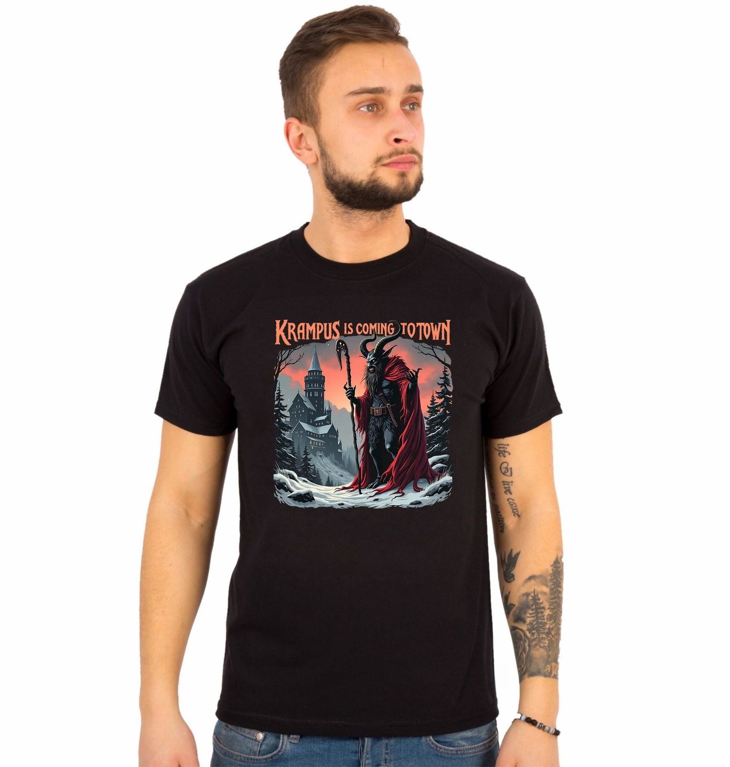 Pánské tričko Krampus přichází do města. Vánoce nemusí být jen o andělech a dárcích, ale i o tradičních strašidelných bytostech. Krampus, démonická postava z alpských legend, je vyobrazen v celé své síle – s rohy, holí a červeným pláštěm na zasněženém pozadí. „Krampus is coming to town“ je ideální pro všechny, kdo mají rádi netradiční pojetí Vánoc, legendy a trochu hororový humor.