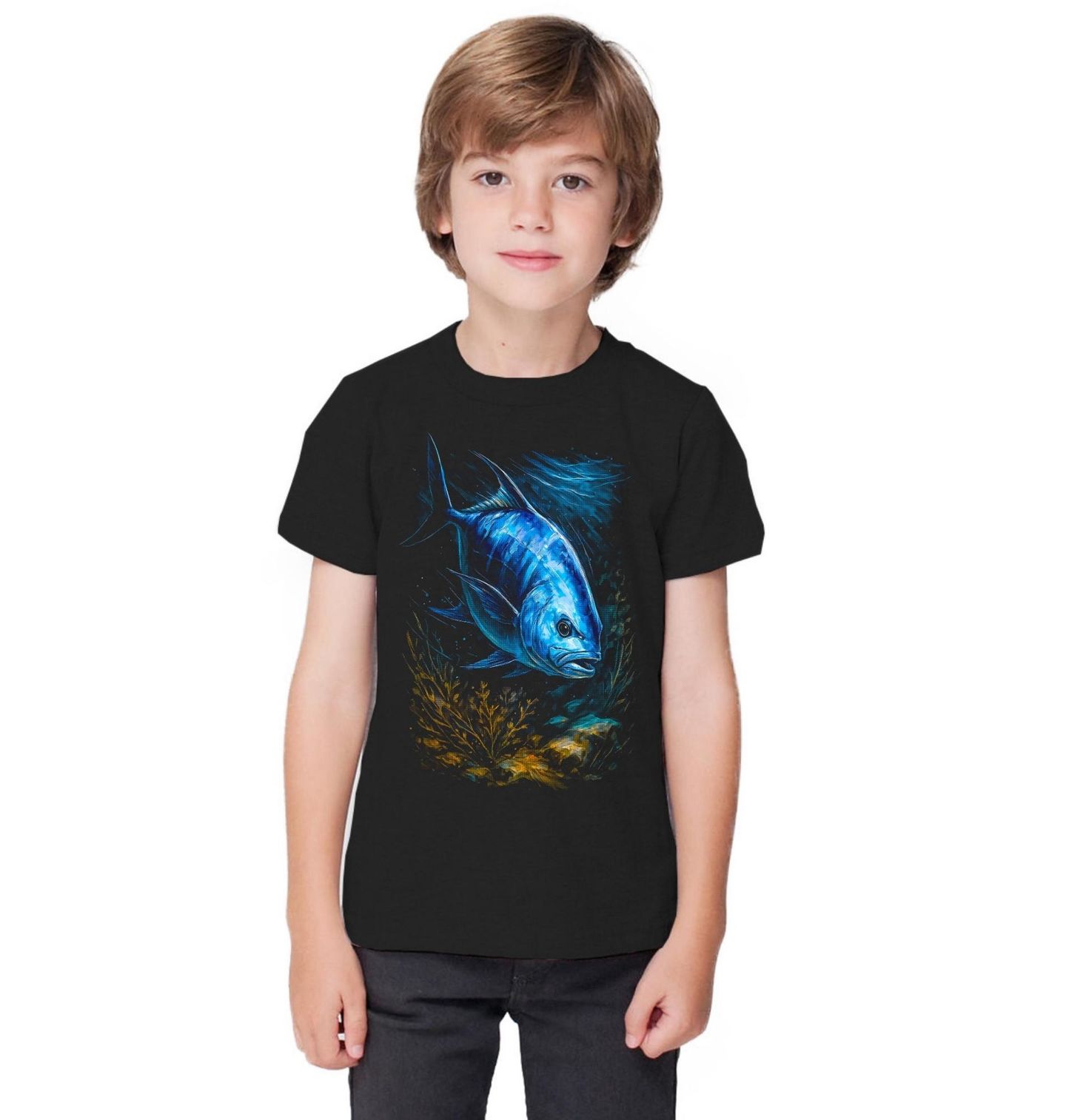 Dětské tričko Kranas obrovský. Dynamický motiv zachycuje kranase obrovského, jednoho z nejrespektovanějších mořských predátorů tropických oblastí. Kranas obrovský patří mezi největší výzvy, jaké může sportovní rybaření nabídnout, a je snem každého dobrodružného rybáře. Design vyzařuje energii otevřeného oceánu, rychlost a nespoutanou divokost moře.