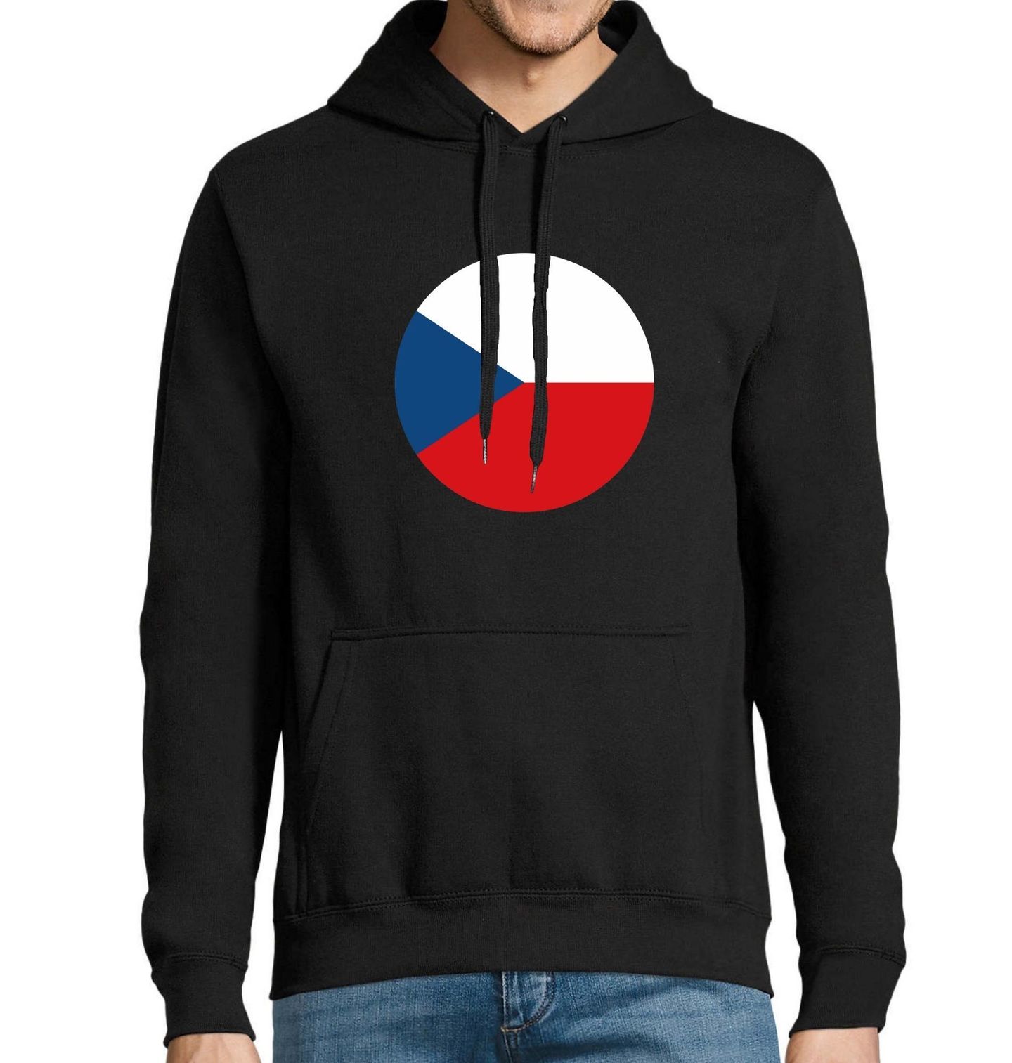 Pánská mikina Kulatá Vlajka Česka. Motiv vlajky s kulatým designem je ideální volbou pro každého vlastence. Stylový a jednoduchý potisk, který dává jasně najevo, že Česko a Česká republika je tvůj domov a vlajka není jen symbol, ale srdcová záležitost.