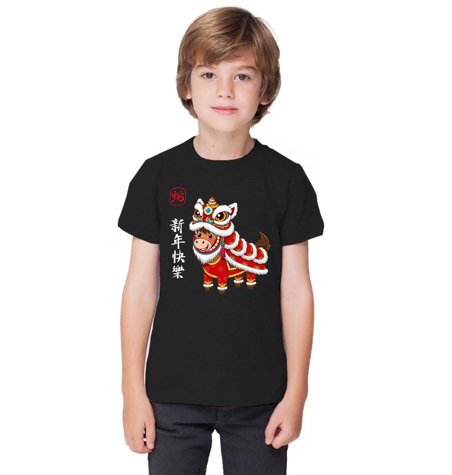 Dětské tričko Kůň v Kostýmu Čínský Lví Tanec. Kůň v tradičním kostýmu lvího tance spojuje radostné oslavy čínský rok ohnivého koně s oblíbeným symbolem štěstí. Ačkoliv je na motivu kůň, lví tanec k oslavám patří každý rok – nezávisle na tom, jaké znamení horoskopu právě vládne. Lví tanec přináší radost, prosperitu a ochranu, zatímco kůň symbolizuje svobodu, energii a sílu.