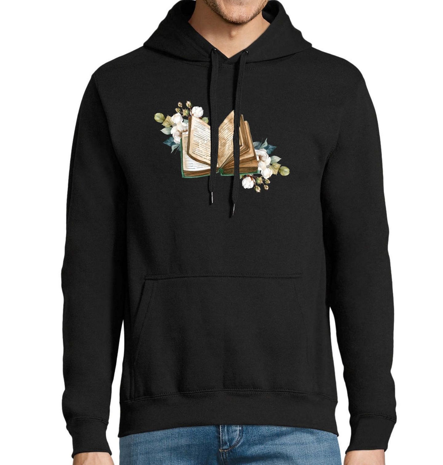 Pánská mikina Květinová kapitola. Pro všechny milovníky knih a jemné estetiky! Toto tričko s motivem otevřené knihy obklopené květinami je ideální pro snílky, čtenáře a všechny, kdo vnímají vůni papíru a krásu slov jako umění. Kniha, která nikdy nekončí – a květiny, které nikdy nezvadnou.