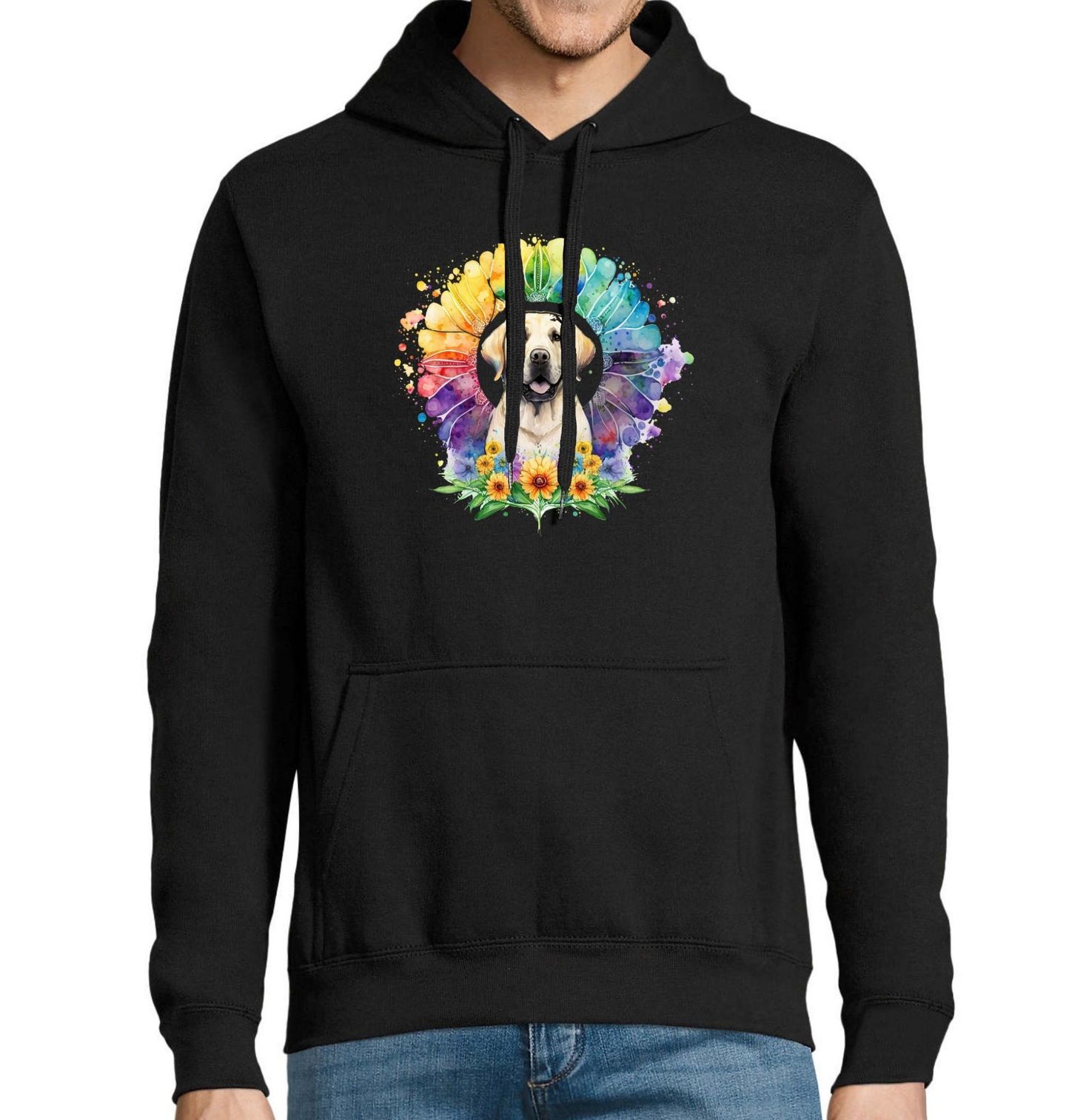 Pánská mikina Květinová mandala a Labradorský retrívr. Tento veselý a hravý design rozjasní den každému pejskaři, který si potrpí na styl i lásku ke čtyřnohým přátelům. Pes Labradorský retrívr je symbolem věrnosti a přátelskosti – stejně jako květiny symbolizují radost a krásu. Spojením těchto prvků vzniká jedinečný potisk, který si zamilují všichni milovníci psů a barev.
