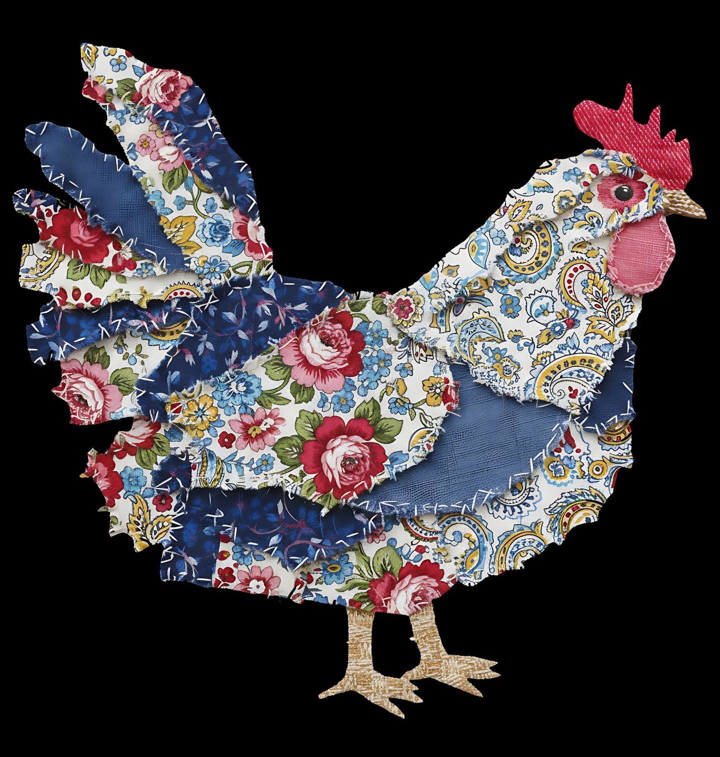 Dětské tričko Květinová Slepice se Záplatami Folk. Kombinace jemných vzorů, květin a textilních detailů vytváří hravý a zároveň útulný folk vzhled inspirovaný tradičním venkovem. Tato slepice evokuje atmosféru domácí farma, kde se snoubí ruční práce, kreativita a láska k přírodě. Díky bohatým detailům a „šitým“ prvkům působí motiv jako zaplátovaná dekorace, která zaujme na první pohled.