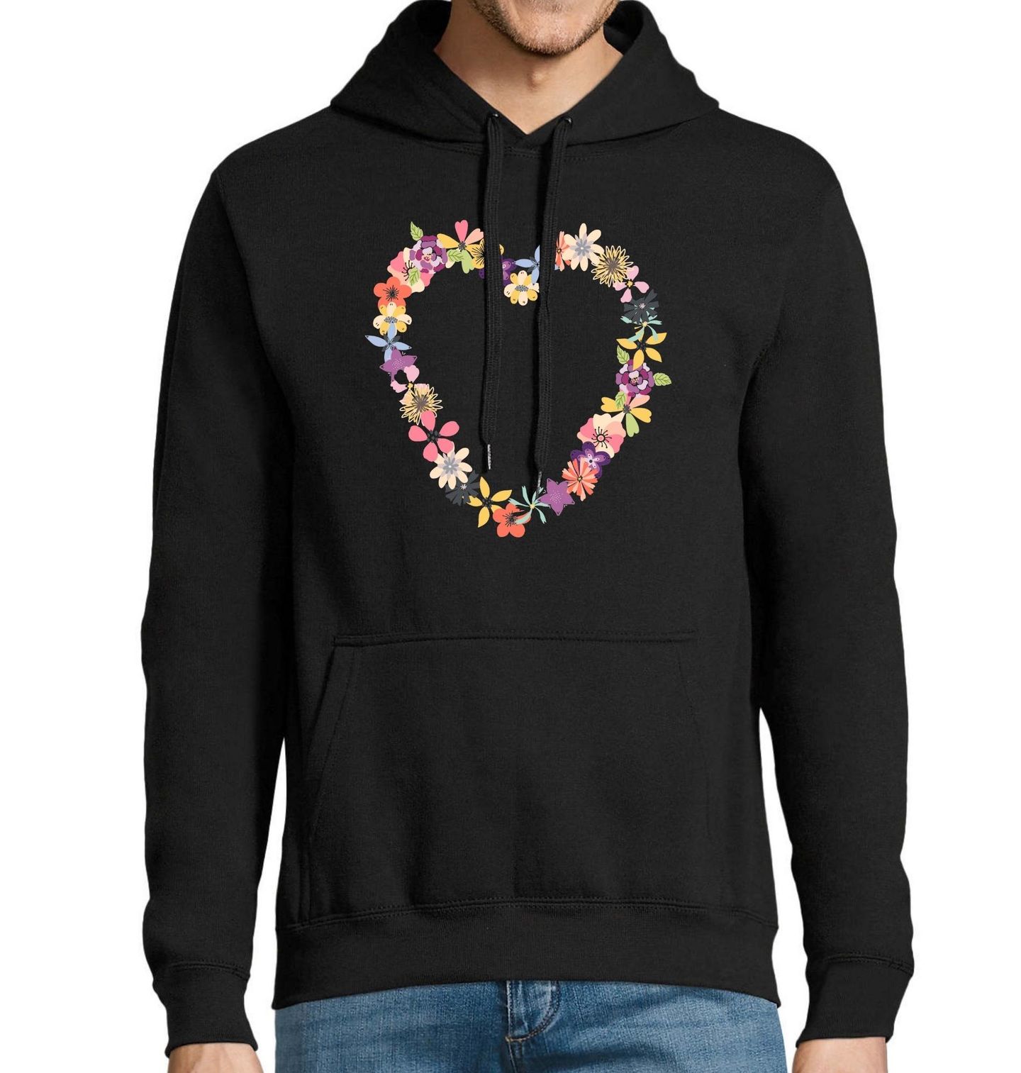 Pánská mikina Květinové Srdce. Objevte radost z jara s tímto designem, kde se květiny snoubí do elegantního věnce ve tvaru srdce. Tento motiv symbolizuje krásu a svěžest jara a dodává vašemu stylu optimismus a lehkost.