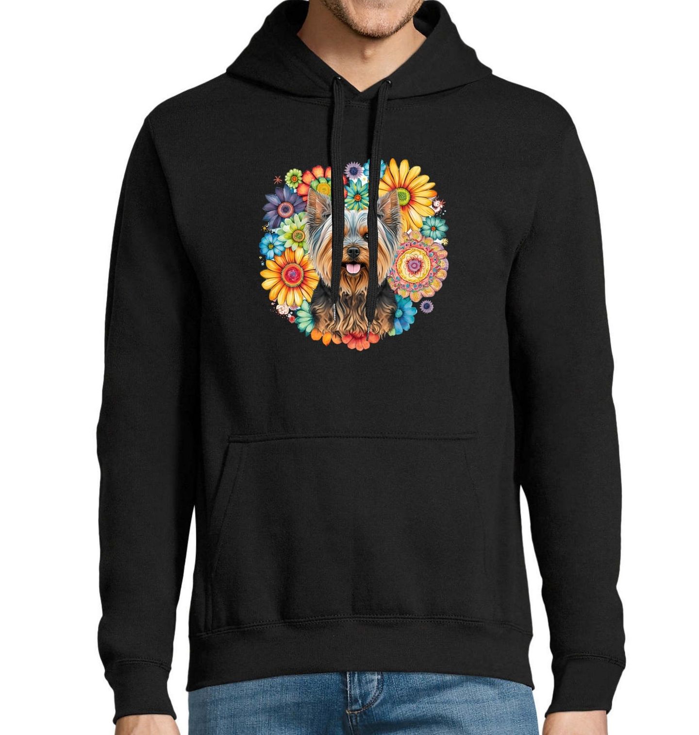 Pánská mikina Květinový Jorkšírský teriér. Toto tričko je doslova pastva pro oči! Roztomilý Jorkšírský teriér obklopený pestrými květinami přináší hravost, barvy a lásku ke čtyřnohým přátelům. Ideální pro každého pejskaře, který má styl a smysl pro detail. Originální design zaujme nejen milovníky módy, ale i ty, pro které je každý pes členem rodiny.