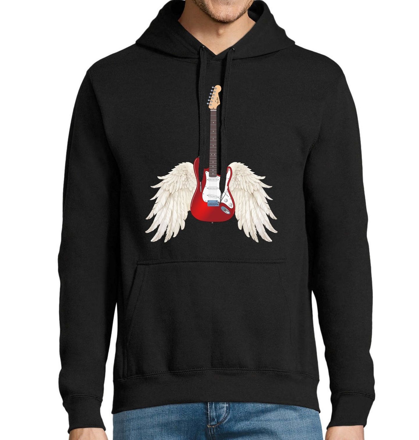 Pánská mikina Kytara s křídly Anděl Rocku. Elektrická kytara s andělskými křídly symbolizuje sílu hudby, svobodu a rockovou nesmrtelnost. Dynamický design spojuje rockovou energii s éterickou krásou, takže je ideální pro kytaristy, hudební nadšence a všechny, kdo mají hudbu v duši. Hraj srdcem a leť vysoko!