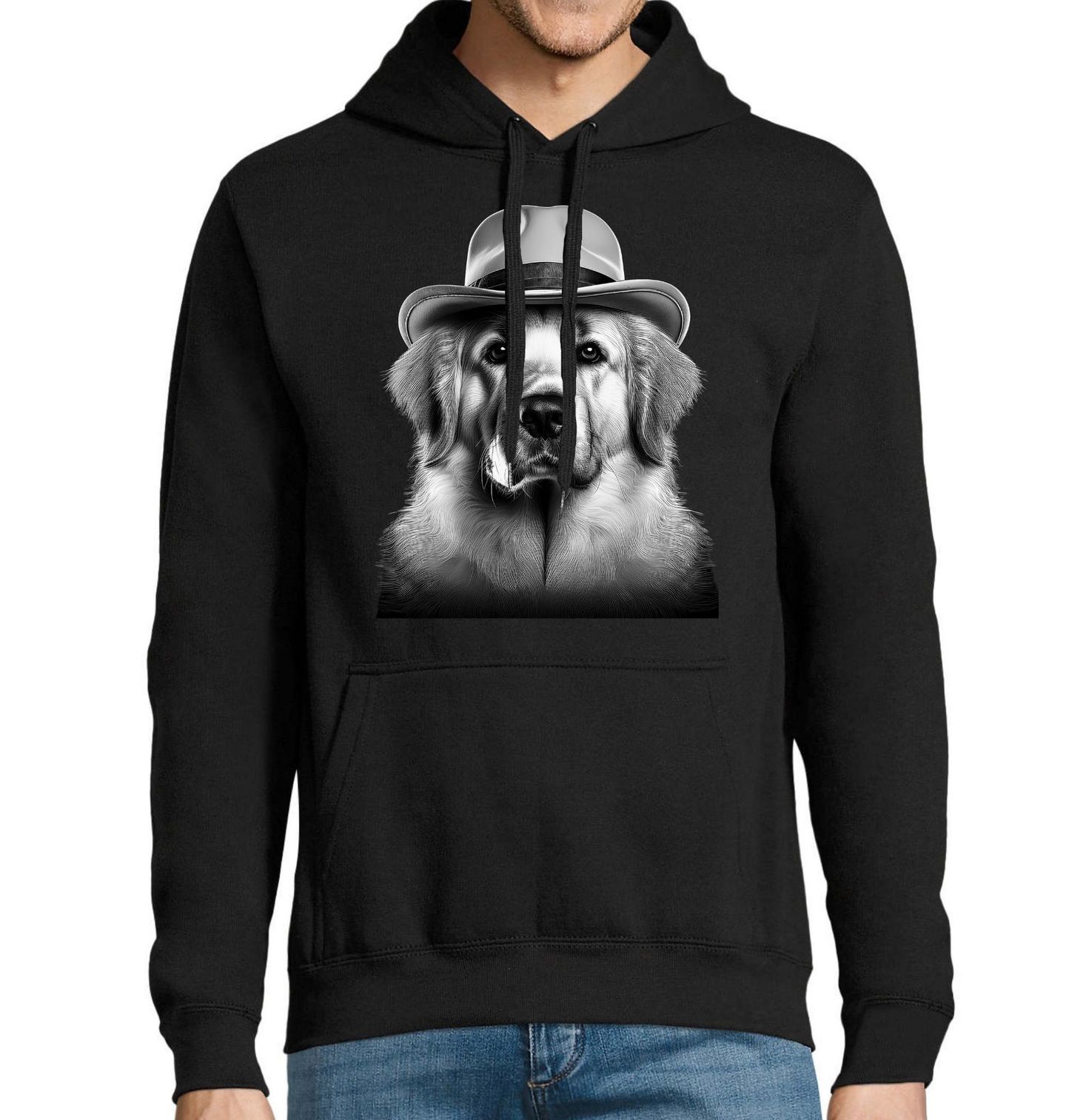 Pánská mikina Labradorský retrívr s Kloboukem. Labradorský retrívr je přátelský a oddaný pes, který si získal srdce lidí po celém světě svou milou povahou a inteligencí. Tento stylový motiv zachycuje retrívra s kloboukem jako skutečného gentlemana, který vyzařuje klid, sílu a eleganci. Každý pejskař ocení charakteristický výraz a detailní zpracování, které vystihuje přirozenou noblesu, jakou Labradorský retrívr představuje.