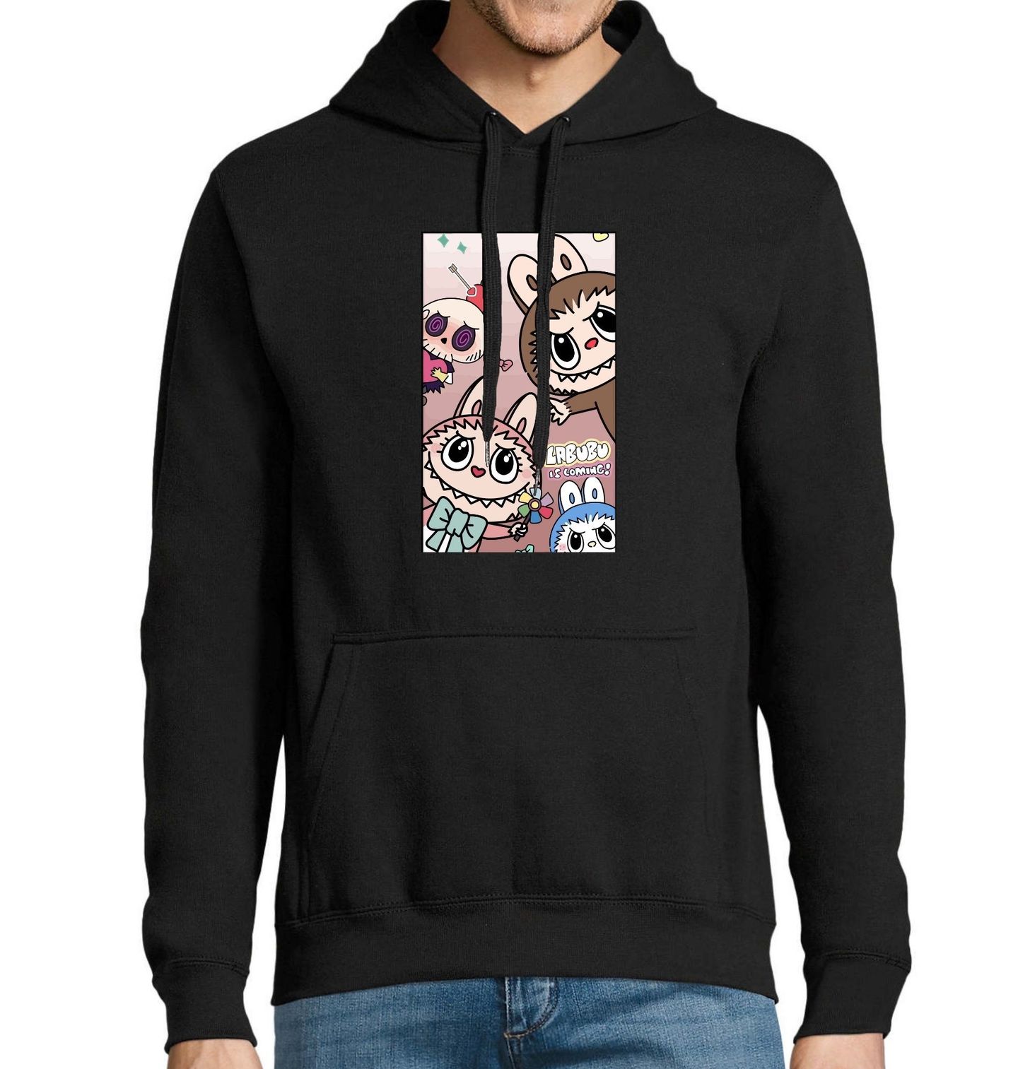 Pánská mikina Labubu Přichází! Labubu Is Coming! Roztomilé a barevné tričko s motivem postavičky Labubu, která se tentokrát objevuje s přáteli ve vtipných a hravých převlecích. Nápis „Labubu Is Coming!“ oznamuje jeho příchod do světa módy i fantazie. Ideální pro fanoušky kawaii stylu, roztomilého designu a pohodového streetwearu.