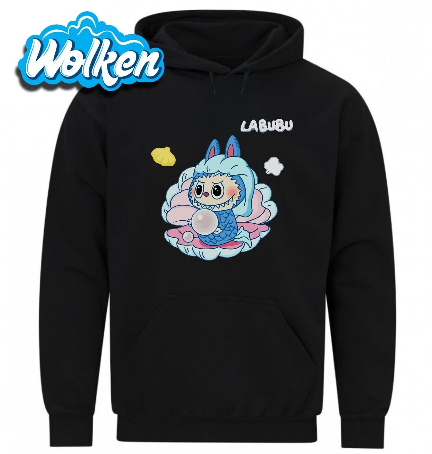 Pánská mikina Labubu v Mořské Perle. Objevte kouzelný motiv s postavičkou Labubu – tentokrát v roztomilém mořském převleku s rybími šupinami a oušky! Labubu sedí v růžové mušli, drží perlu a tváří se odhodlaně. Ideální tričko pro milovníky japonského stylu, sběratelů figurek i fanoušky roztomilých postaviček.