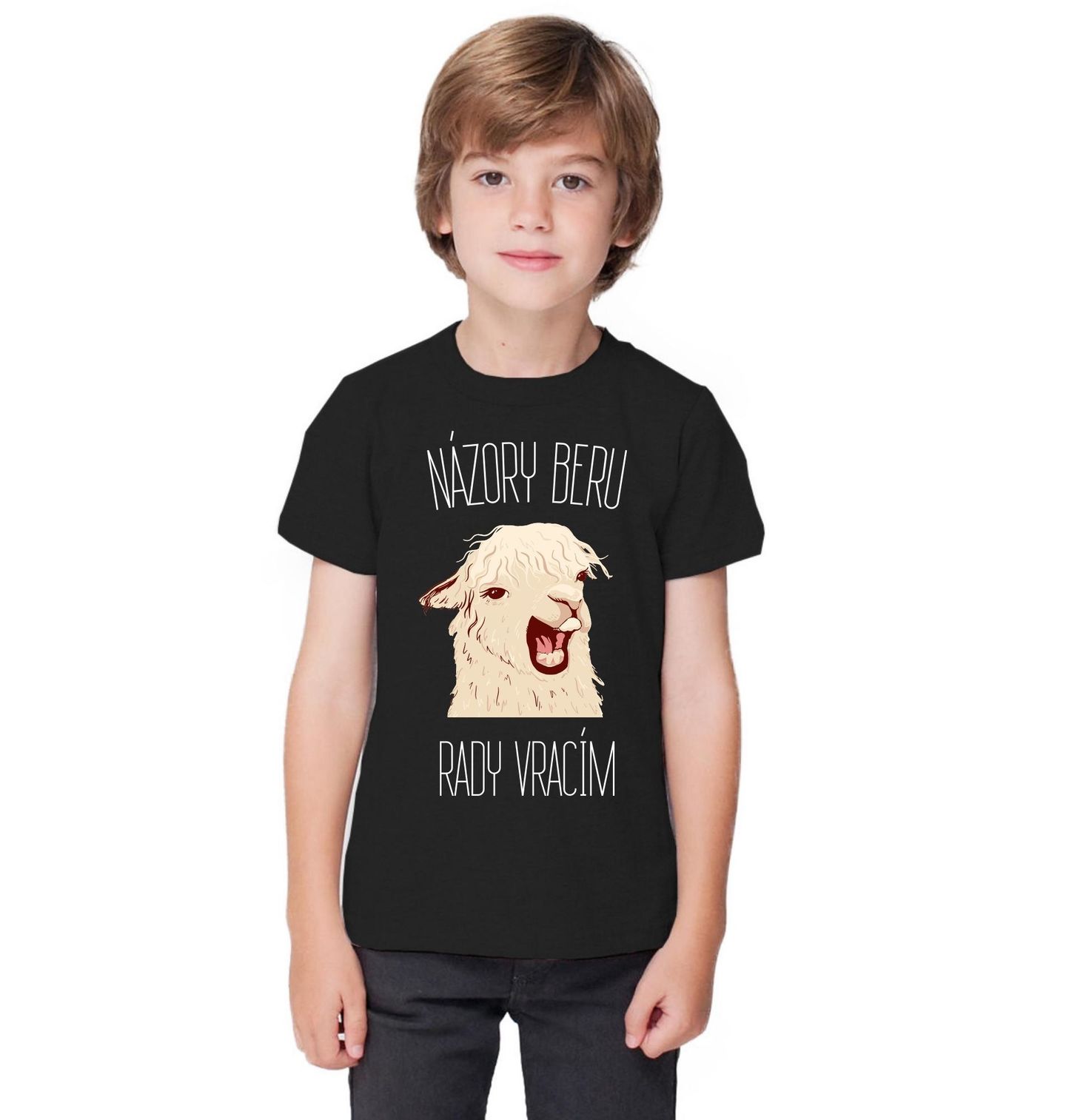 Dětské tričko Lama Názory beru, rady vracím