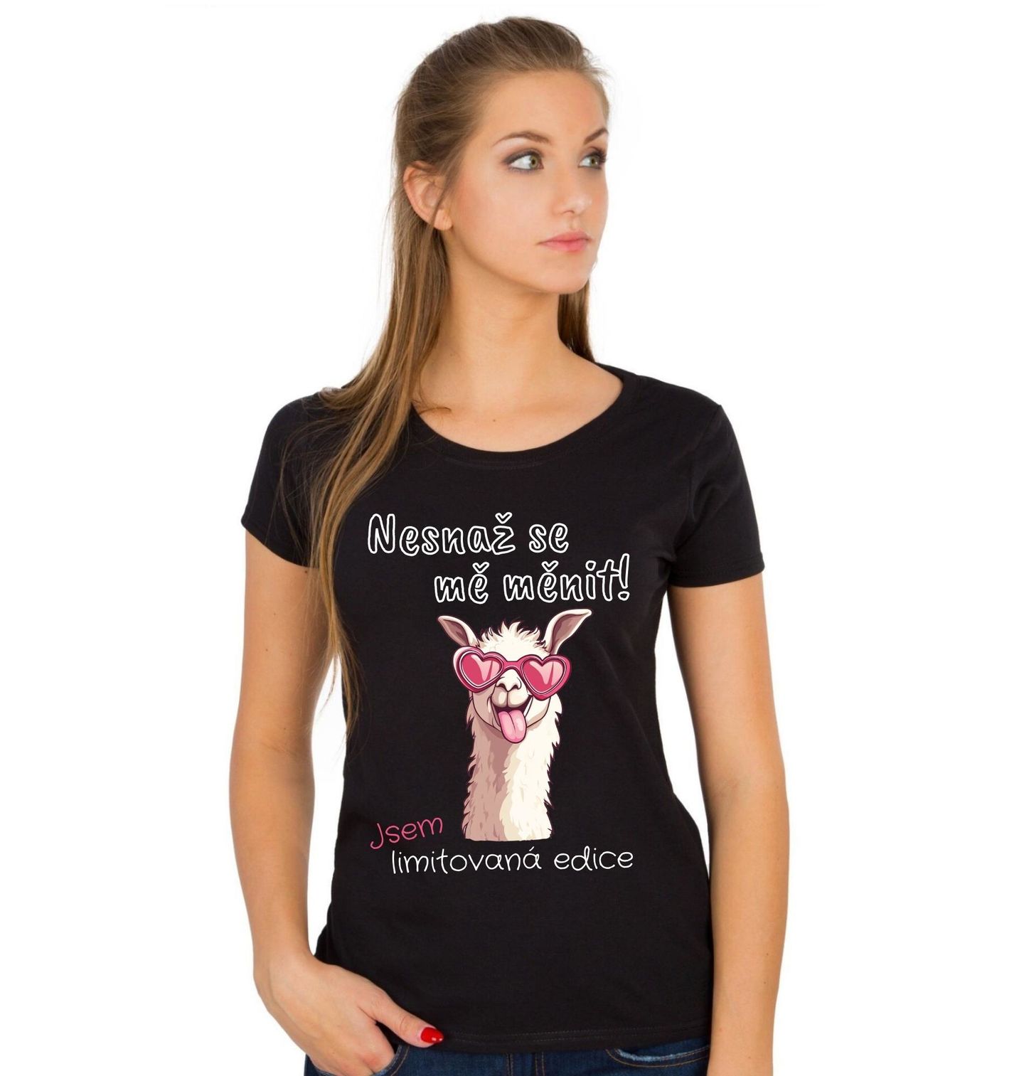 Dámské tričko Lama Nesnaž se mě měnit! Jsem limitovaná edice. Vtipné zpracování zaujme na první pohled a skvěle vystihne náladu lidí, kteří si jdou vlastní cestou a neřeší názory okolí. Motiv je ideální pro všechny, kdo chtějí ukázat svou originalitu a dát světu jasně najevo, že změna není vždy potřeba – protože každá lama je originál.