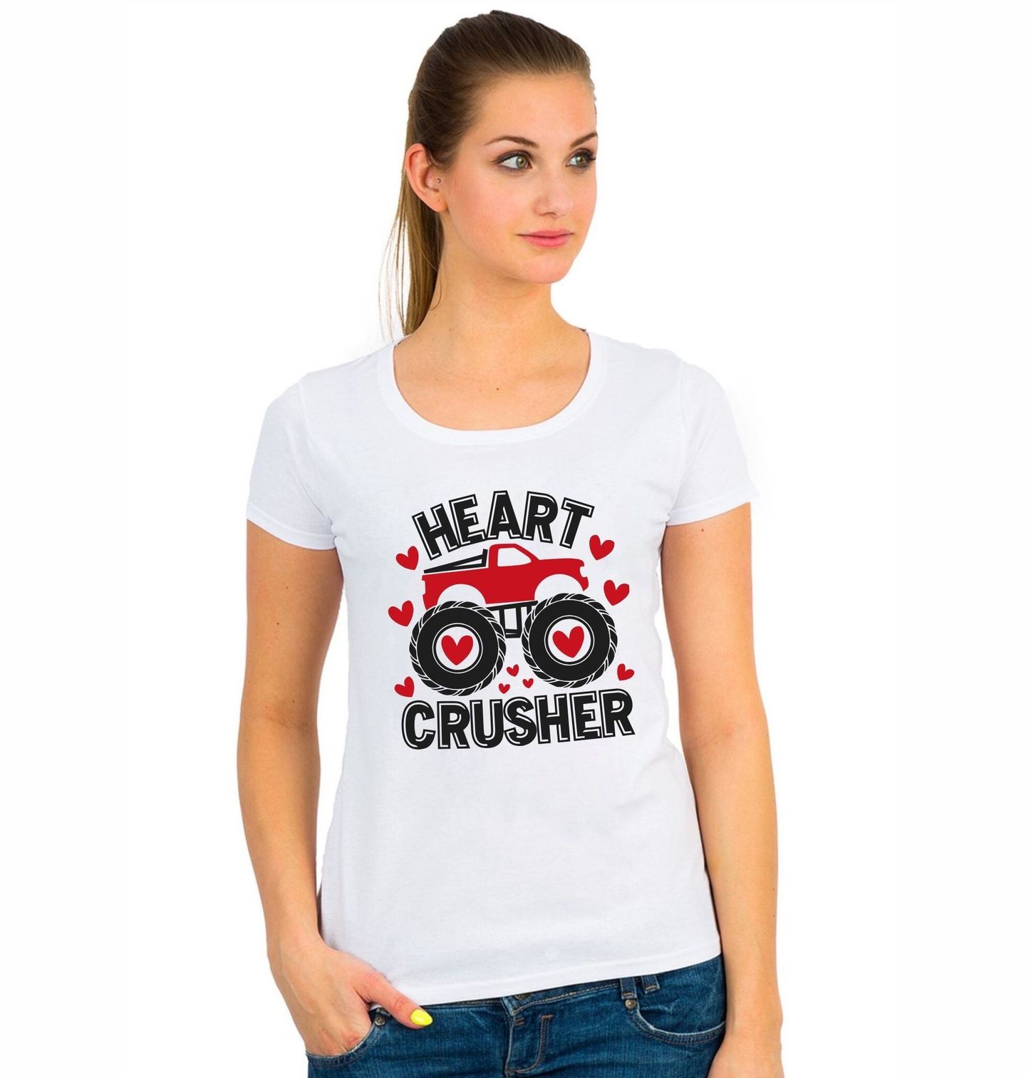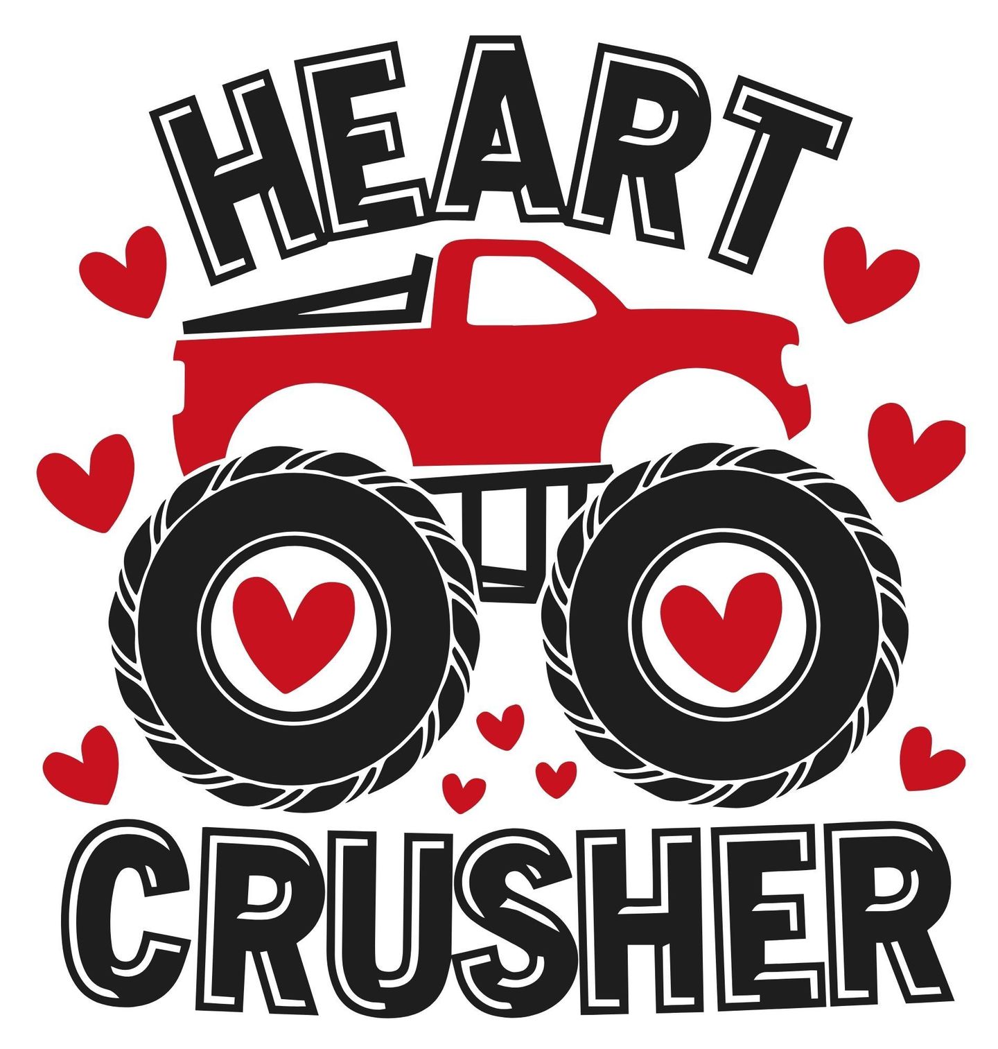 Dámské tričko Lamač Srdcí Monster truck Heart Crusher. Vánoční auto se srdcem je pro všechny malé i velké drtiče (nebo ochránce) srdcí! Tento stylový motiv s monster truckem, obřími koly a srdíčky okolo si zamiluje každý fanoušek silných strojů, který má smysl pro humor a srdce na správném místě.