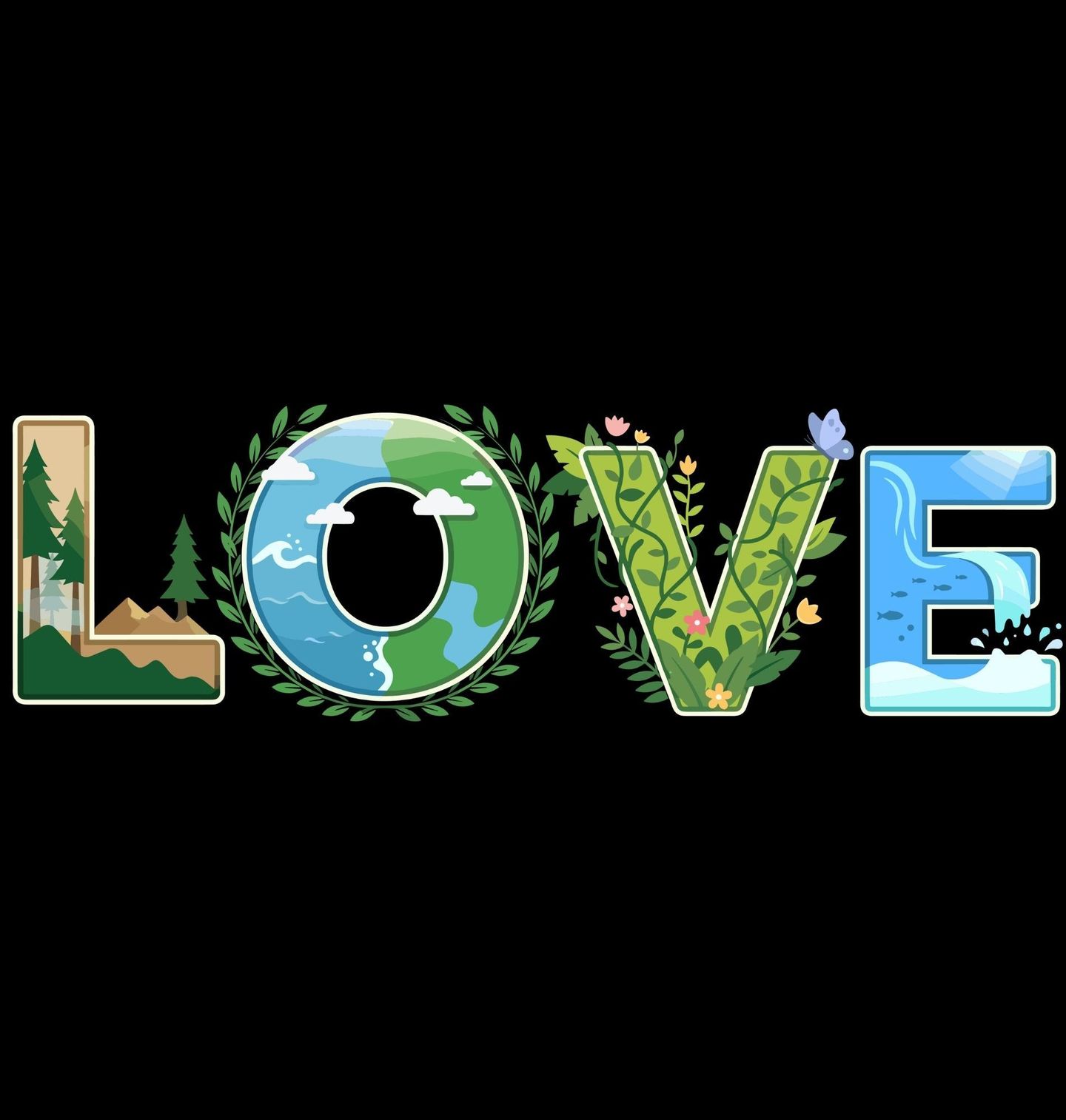 Dětské tričko Láska k Přírodě LOVE. Kreativní nápis LOVE (Láska), kde každé písmeno představuje jiný přírodní prvek – lesy, oceány, rostliny a vodu. Tento design symbolizuje harmonii mezi člověkem a přírodou a zdůrazňuje důležitost její ochrany. Barevné a detailní provedení působí svěže a inspirativně. Skvělá volba pro milovníky přírody, cestování a ekologického životního stylu.