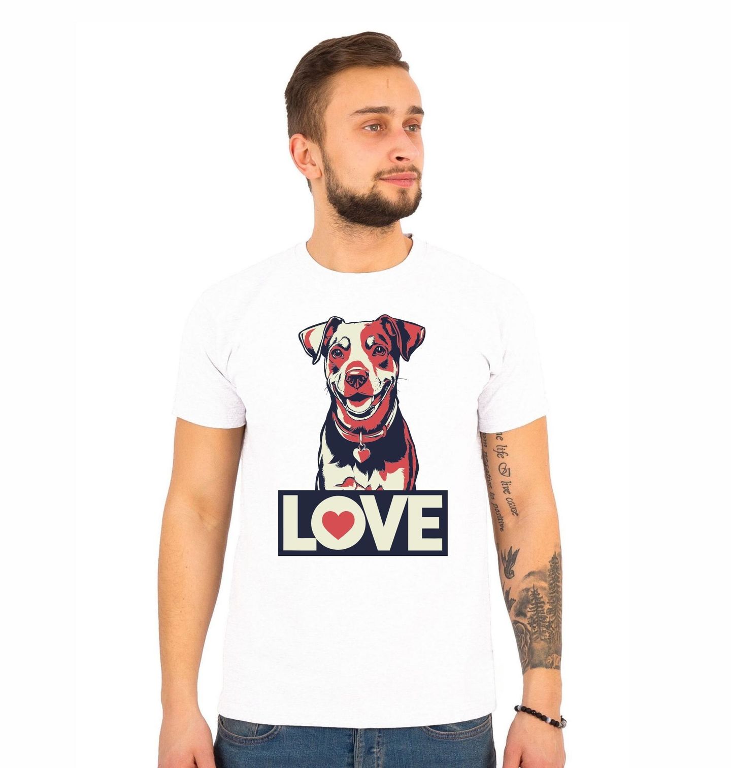 Pánské tričko Láska k Psovi Love Jack Russell Terrier. Tento motiv psa vyzařuje radost, věrnost a pozitivní energii. Minimalistický design s výrazným nápisem „LOVE“, neboli „Láska“, podtrhuje silné pouto mezi člověkem a jeho čtyřnohým přítelem. Skvělá volba pro každého milovníka psů.