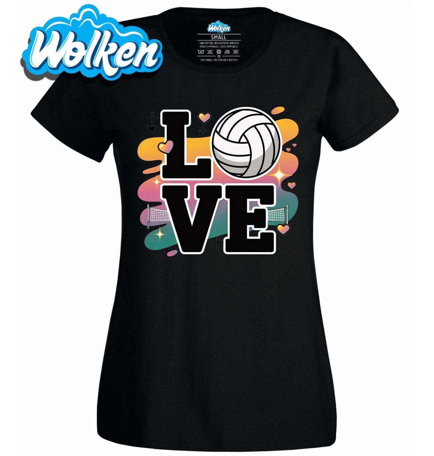Dámské tričko Láska k Volejbalu Love Volleyball. Veselý a výrazný motiv s nápisem LOVE, kde místo písmene „O“ září volejbalový míč, je ideálním symbolem toho, že volejbal je skutečná láska. Barevné pozadí, srdíčka a volejbalové sítě dotvářejí energii a radost, kterou tento sport přináší.