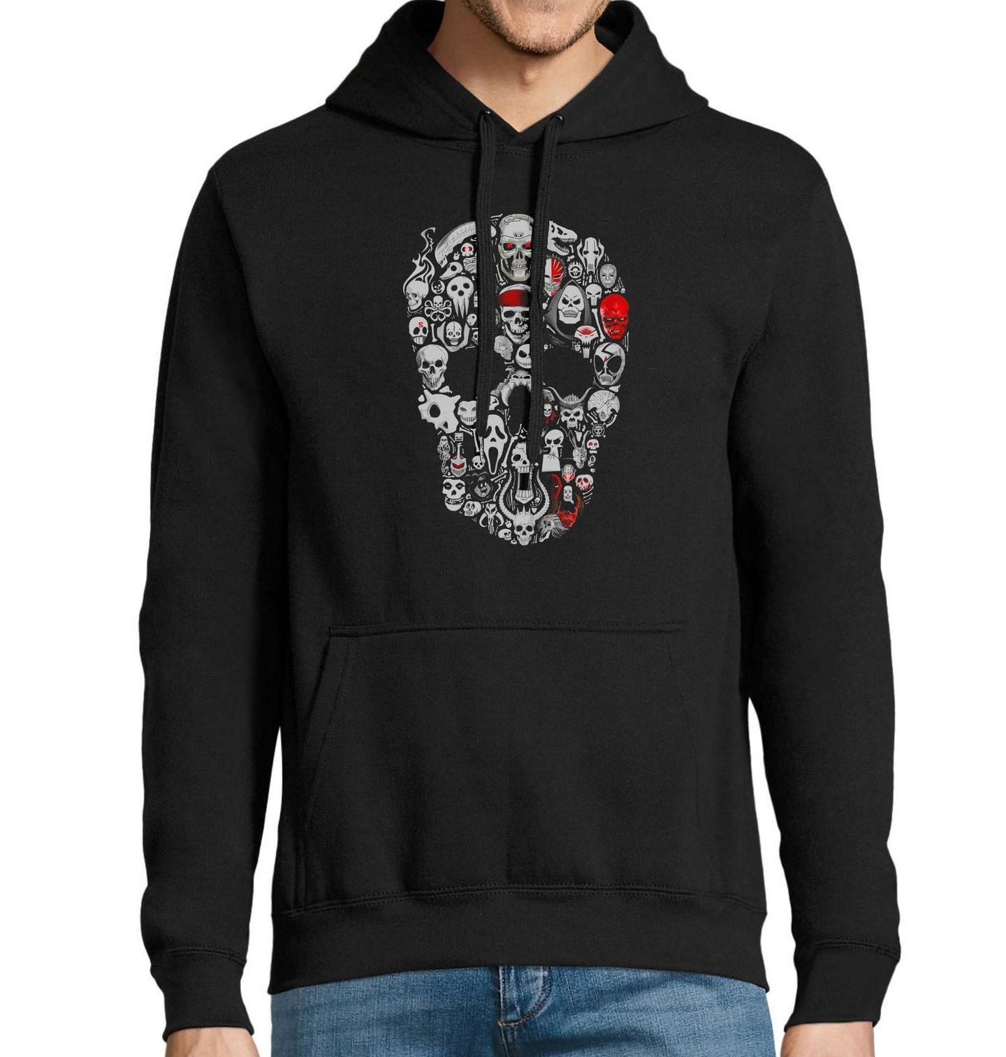 Pánská mikina Lebka z Hororových Postav. Lebka složená z hororových postav a symbolů, které znáte ze svých nejtemnějších nočních můr. Od démonických masek po ikonické přízraky – tento motiv je vizuálním mixem strachu, temnoty a popkultury. Pro milovníky hororu, strachu a detailů.