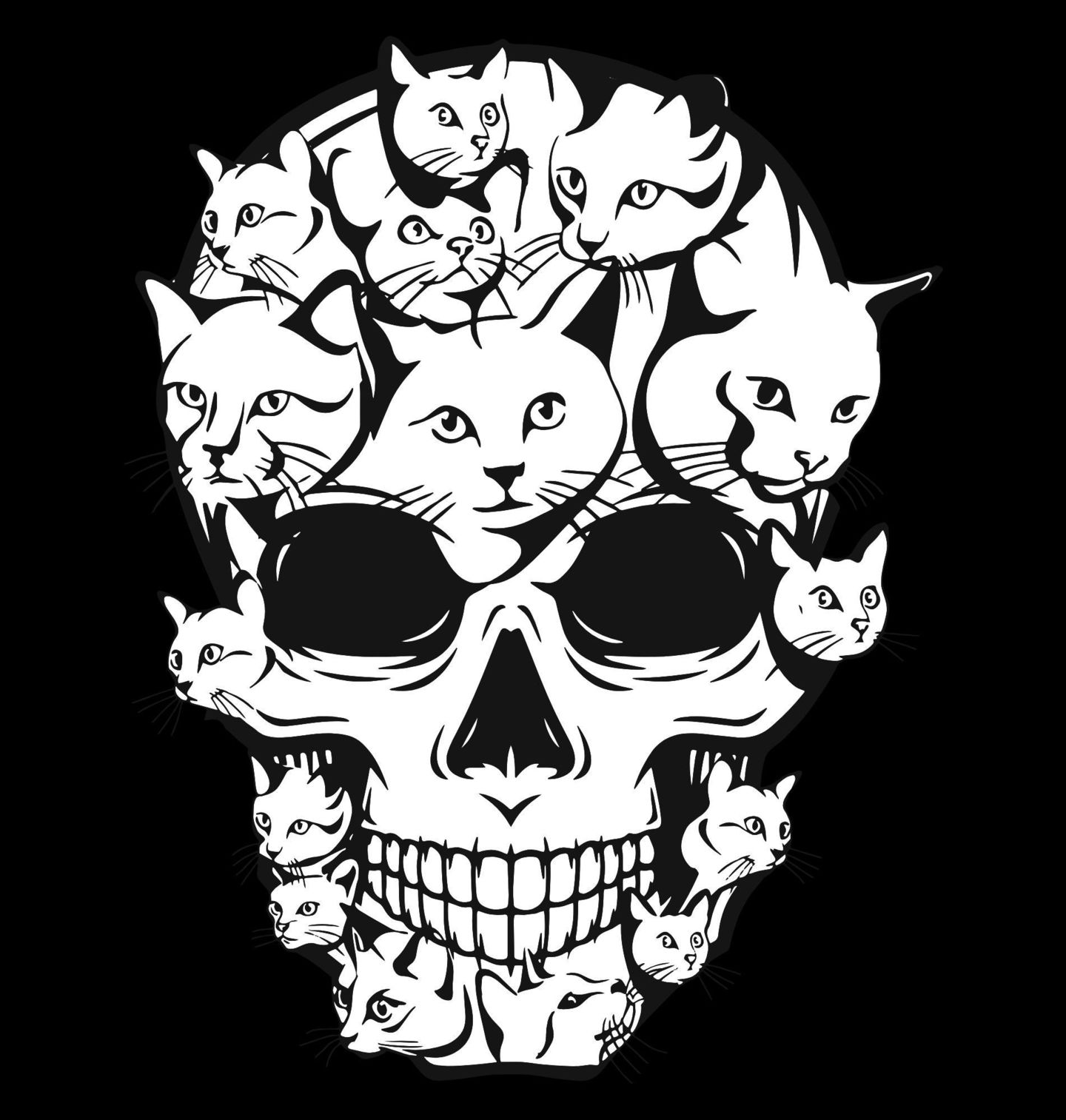 Dámské tričko Lebka z Koček. Lebka složená z desítek detailních obličejů – každá kočka přidává vrstvu tajemna, elegance i špetku šílenství. Tento originální design propojuje temnotu s roztomilostí, ať už jsi milovník gotiky, tetování, nebo jen prostě zbožňuješ kočky.